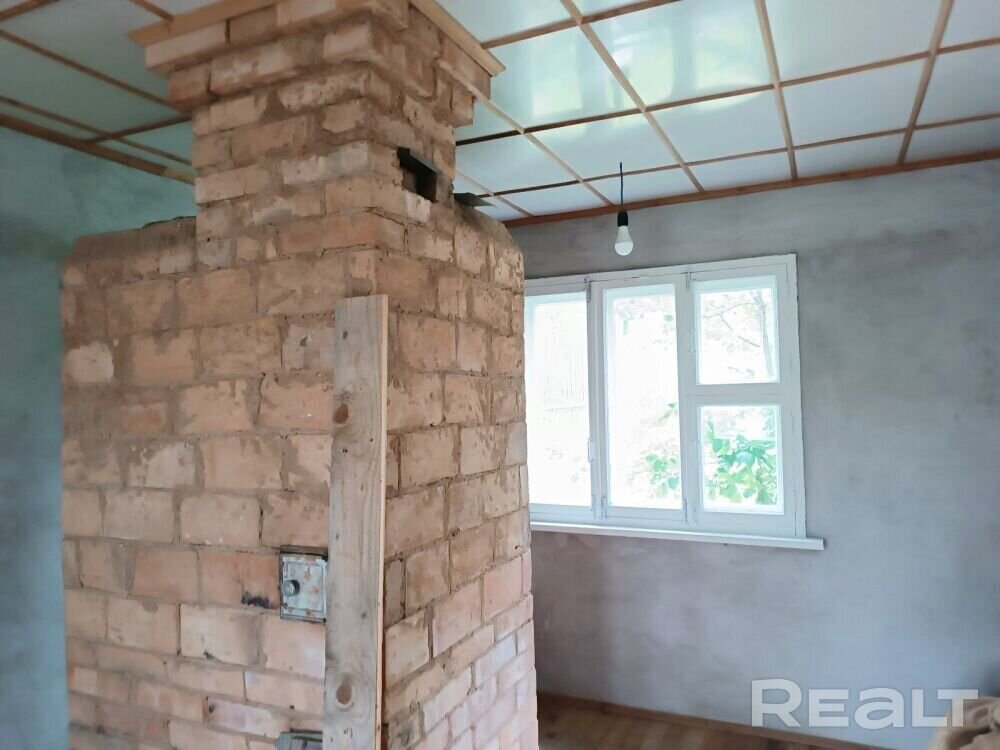 Здесь можно купить небольшой кирпичный домик с металлической крышей на 25 квадратов. Судя по фот, недавно он пережил ремонт — стены оштукатурены, полы новые. Отопление печное, но в перспективе можно подвести газ.