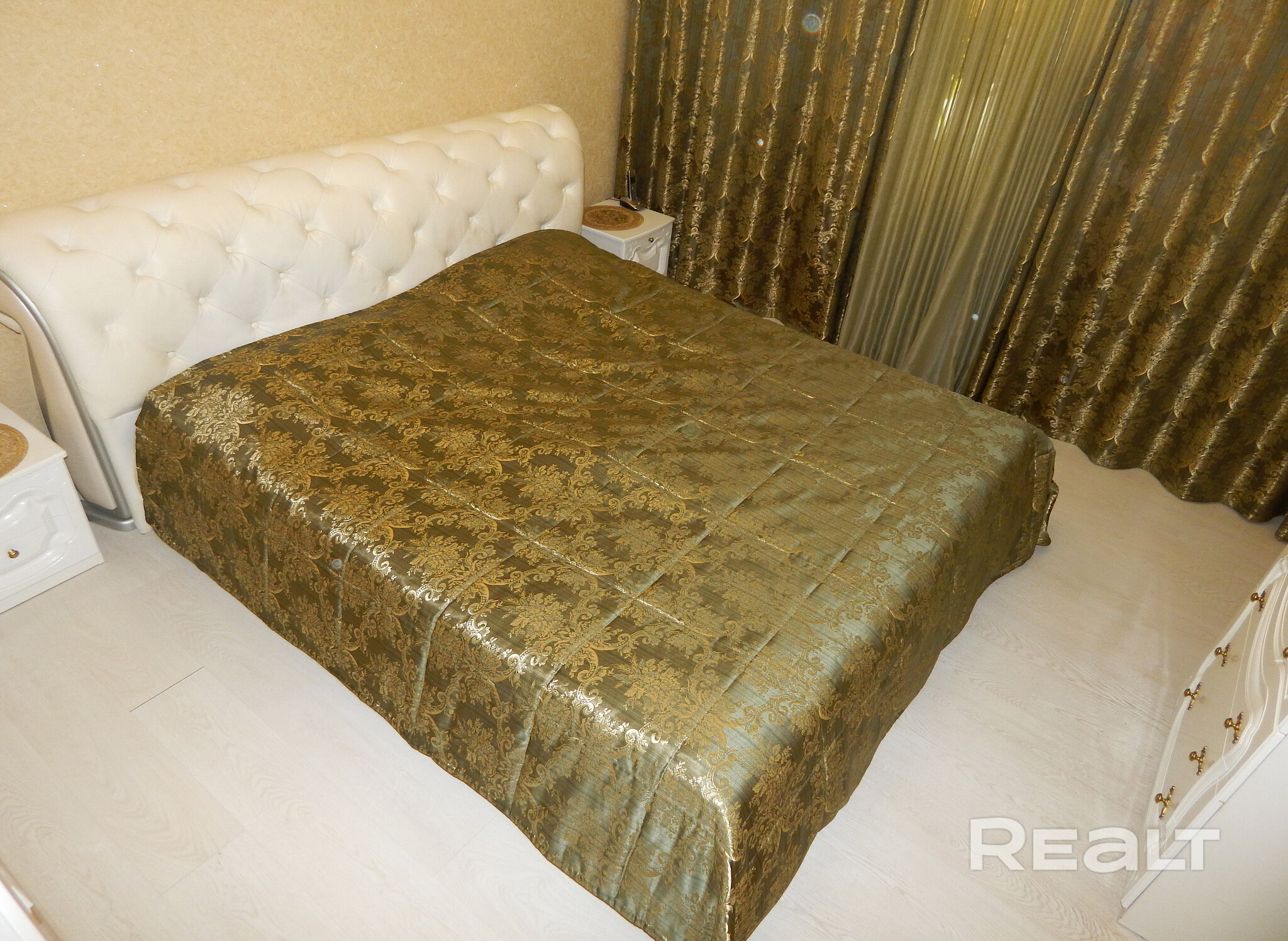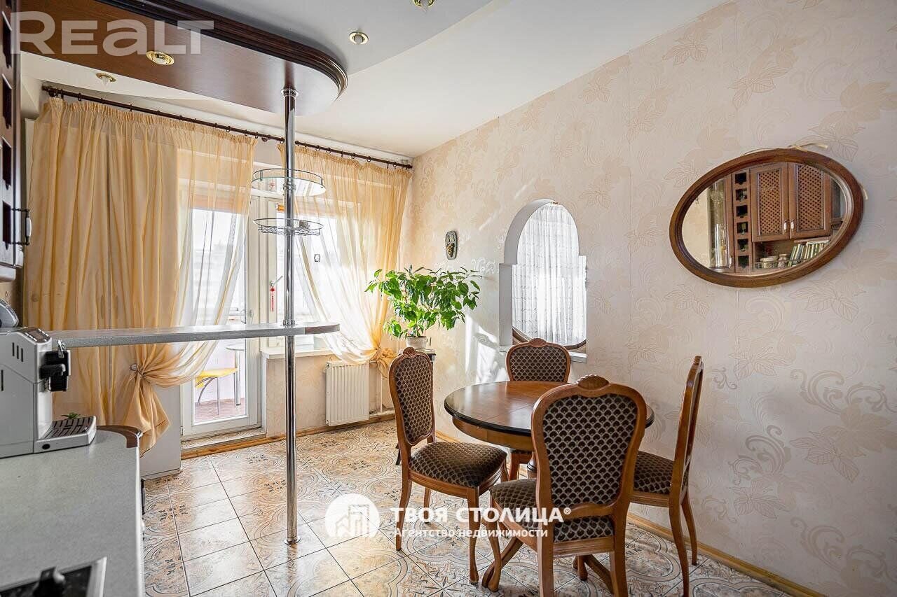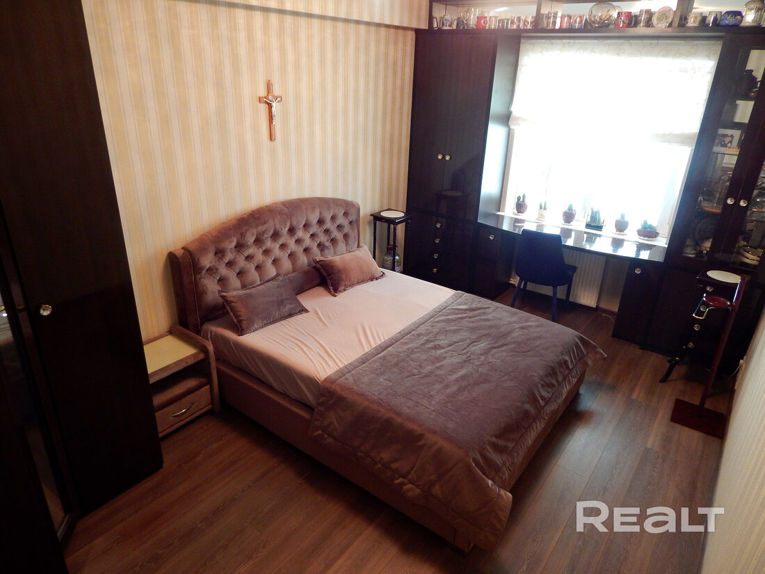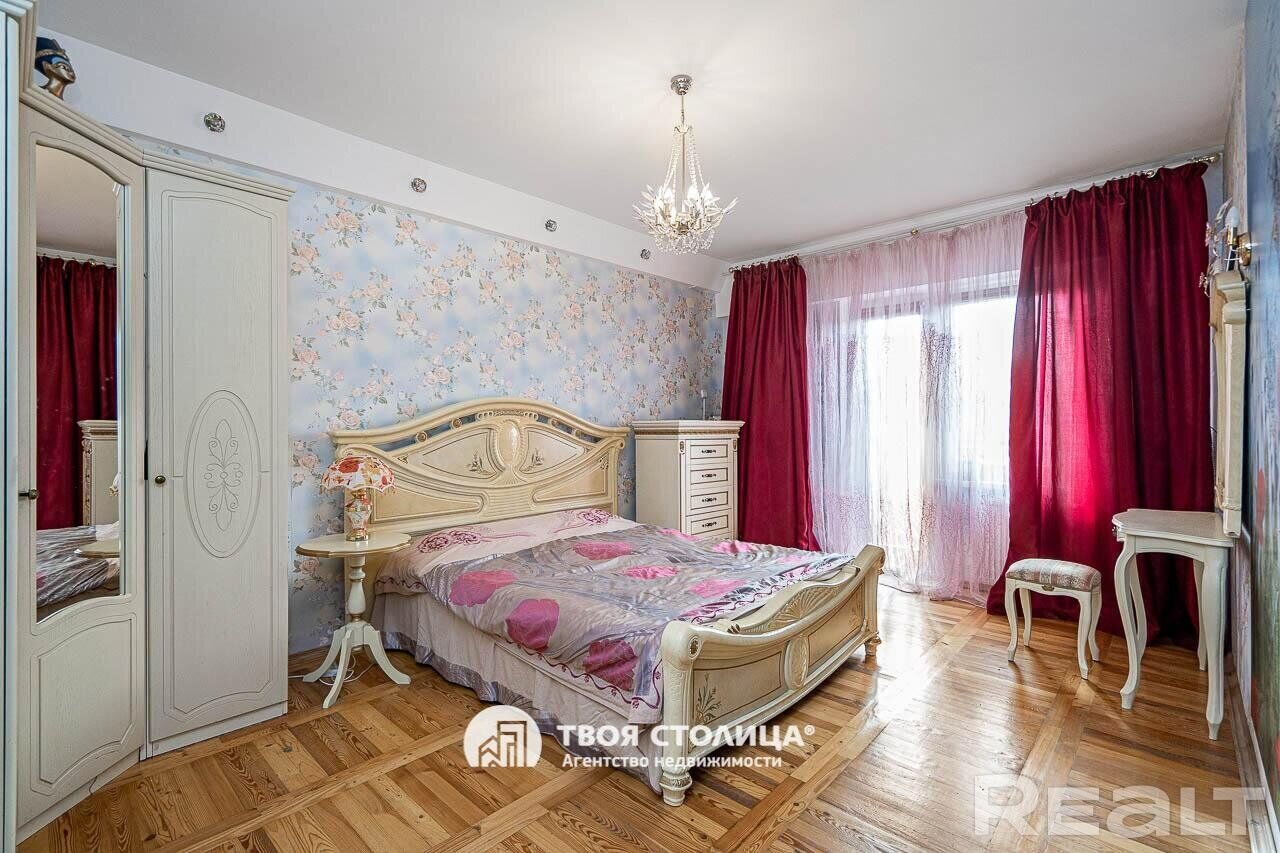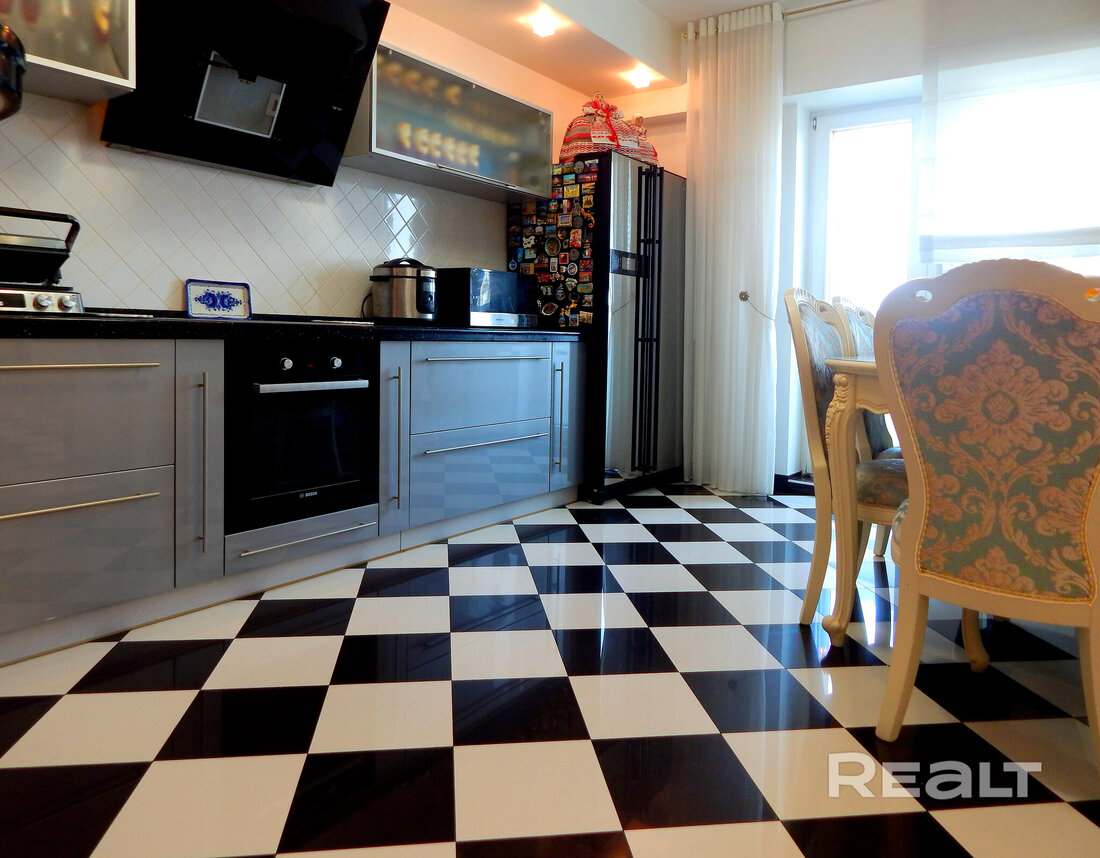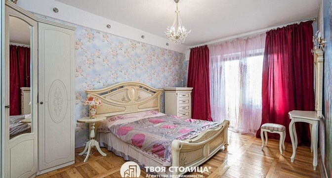 Еще одно предложение — трехкомнатная квартира с красивым ремонтом в классическом стиле. Жилье расположено на четвертом этаже. На площади в 93 квадрата разместились 3 изолированные комнаты, большая кухня, прихожая, две лоджии и два санузла. На кухне — встроенная кухонная мебель из массива (вишня, по итальянскому проекту). Варочная панель электрическая (Zanussi), встроенный духовой шкаф, посудомоечная машина (Bosch). В гостиной установлен кондиционер Hokkaido. Предусмотрены места для хранения, в том числе вместительный шкаф-купе. На этаже есть кладовая для общего пользования. Стоимость — 248 тысяч долларов (2641 доллар — за метр).