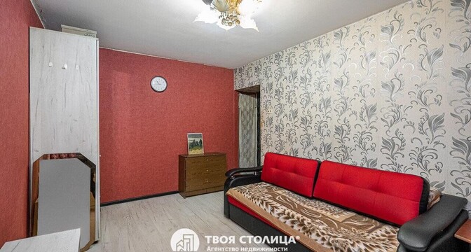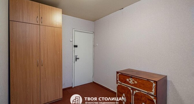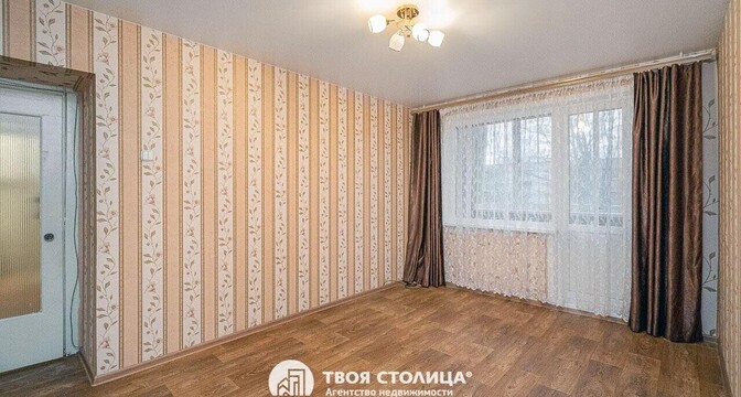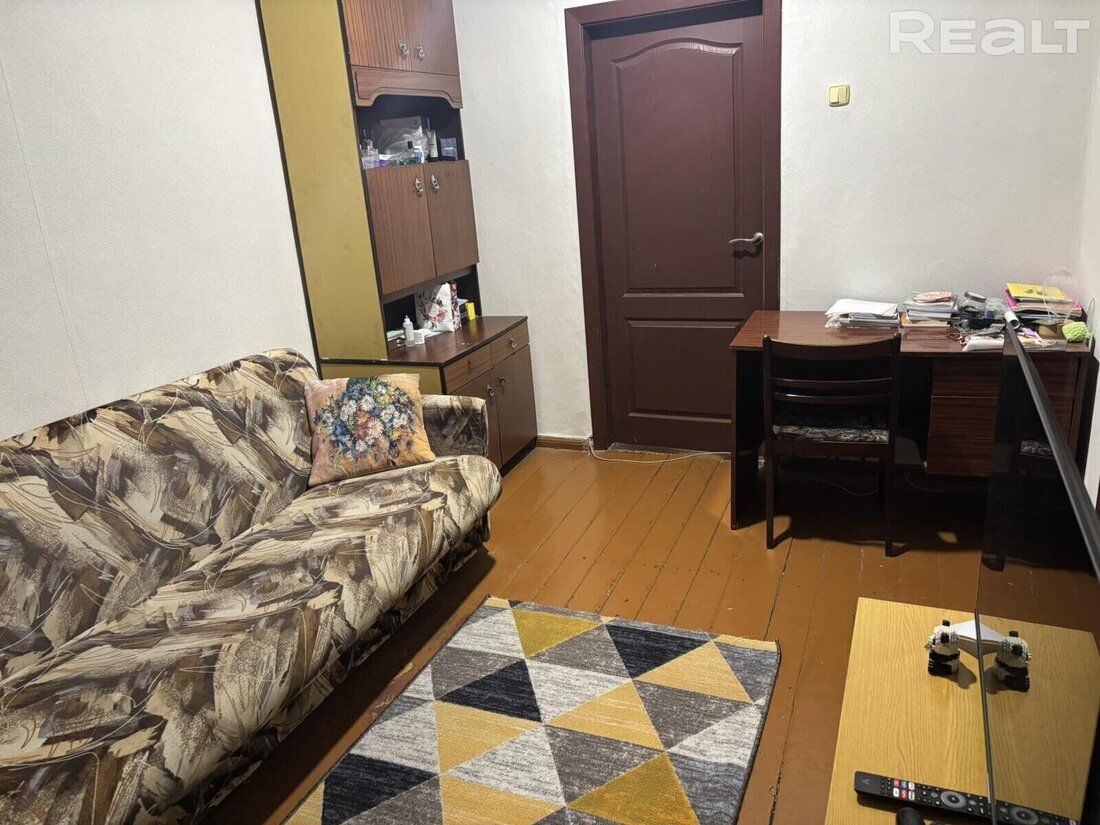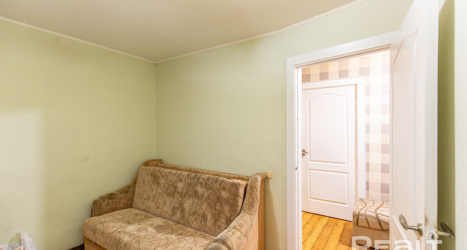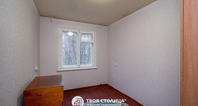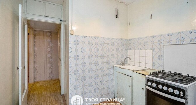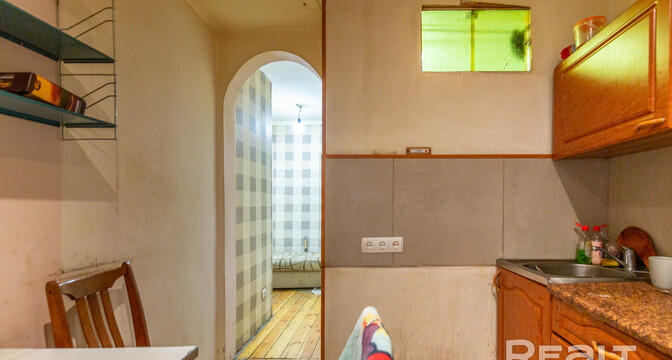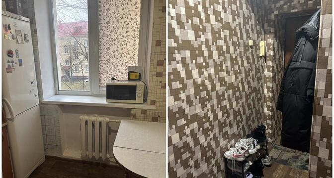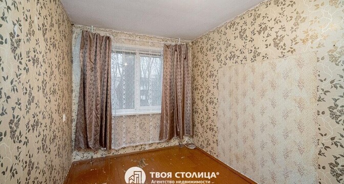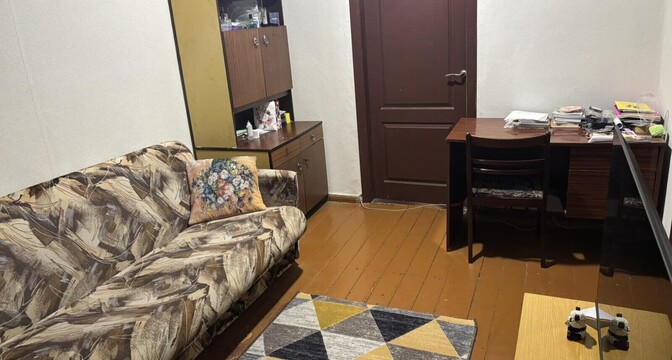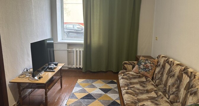 Квартира нуждается в обновлении. Одна из комнат совмещена с коридором. Жилье идет без балкона.