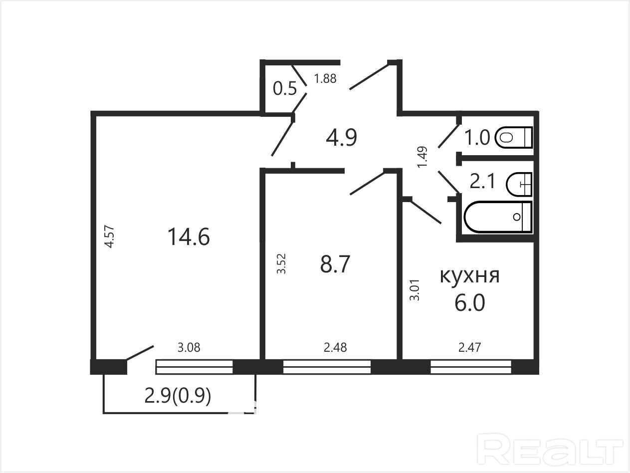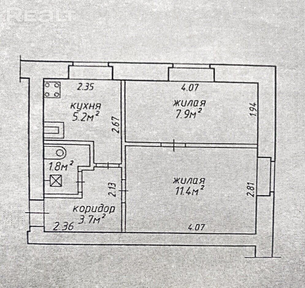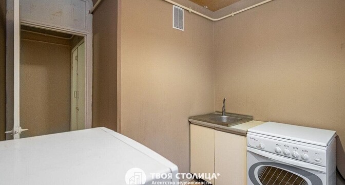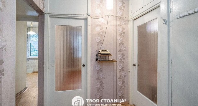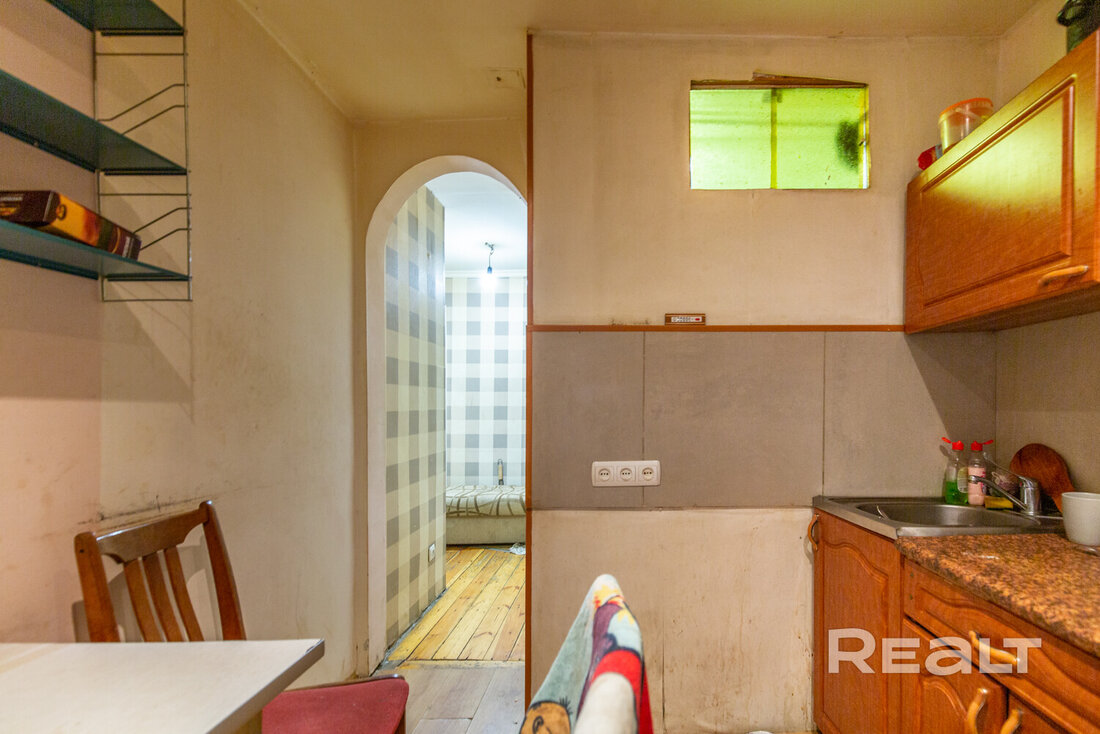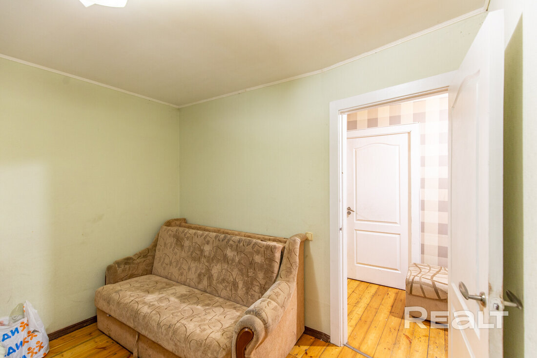 Квартира нуждается в обновлении. Одна из комнат совмещена с коридором. Жилье идет без балкона.