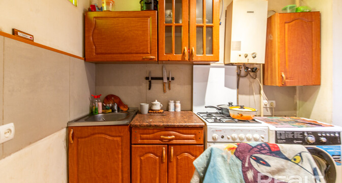 Пятиэтажный дом на Уборевича, 154 построили в 1967 году. На четвертом выставлена на продажу двушка в 38,6 м². Кухня занимает 6,2 метра.