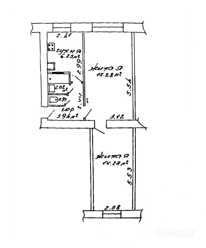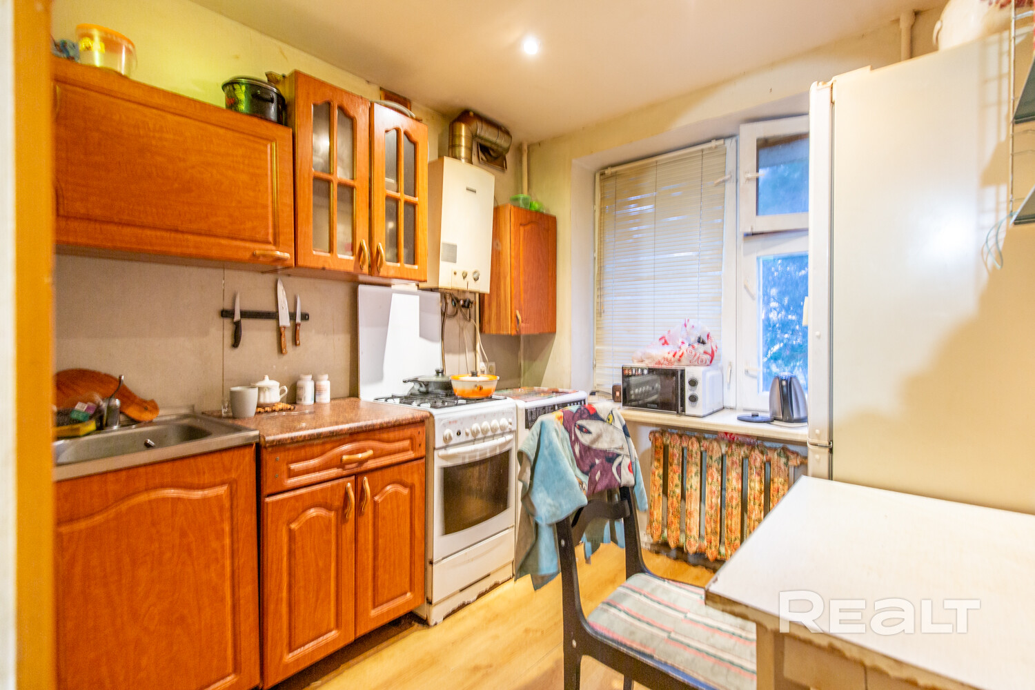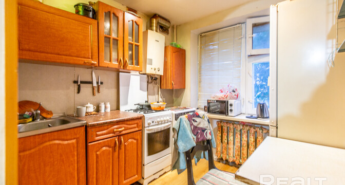На улице Лынькова, 79 продается жилье на первом этаже. Пятиэтажный дом построили в 1969 году. Двушка занимает 44,71 м², на кухню выделено 6,25 м². В 2010-м был сделан капремонт.