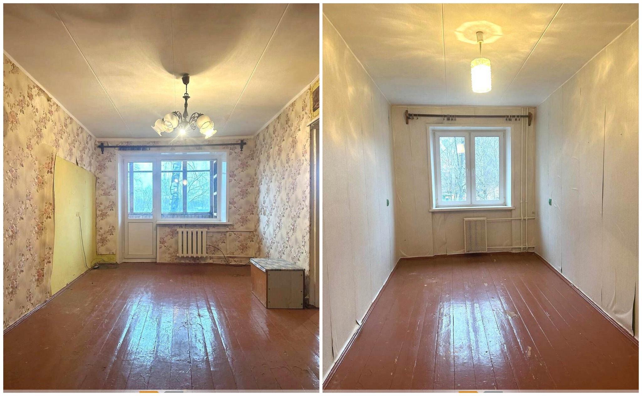 Квартира нуждается в косметическом ремонте. Обе комнаты раздельные. Мебель и техника практически вывезены. Из одной комнаты есть выход на застекленный балкон. Установлены стеклопакеты.