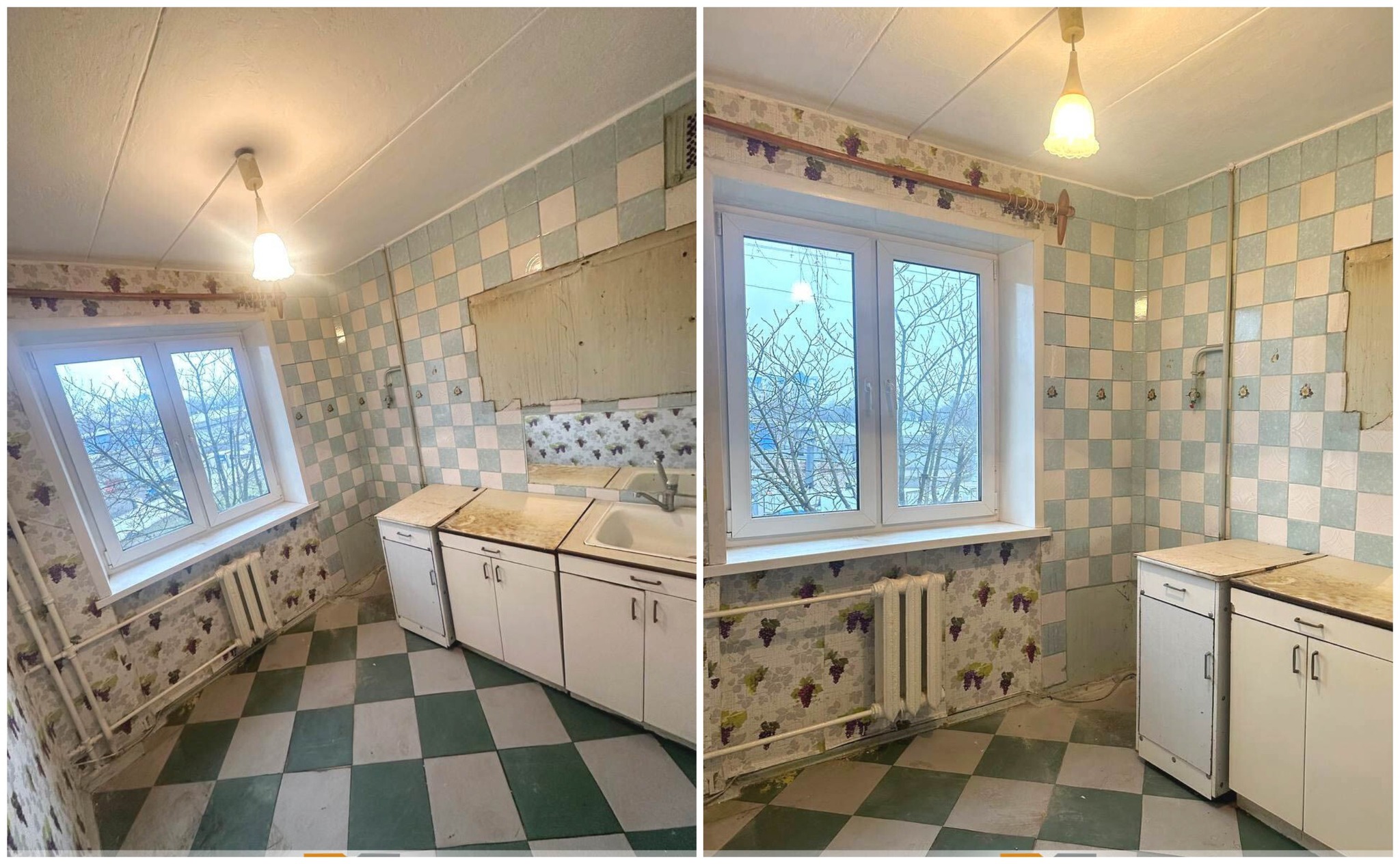 Первая двухкомнатная квартира в подборке расположилась в пятиэтажном доме 1972 года на проспекте Рокоссовского, 51. Она занимает площадь в 38,7 метра на первом этаже. На кухню выделено 6 квадратов. Капремонт прошел в 2021-м.