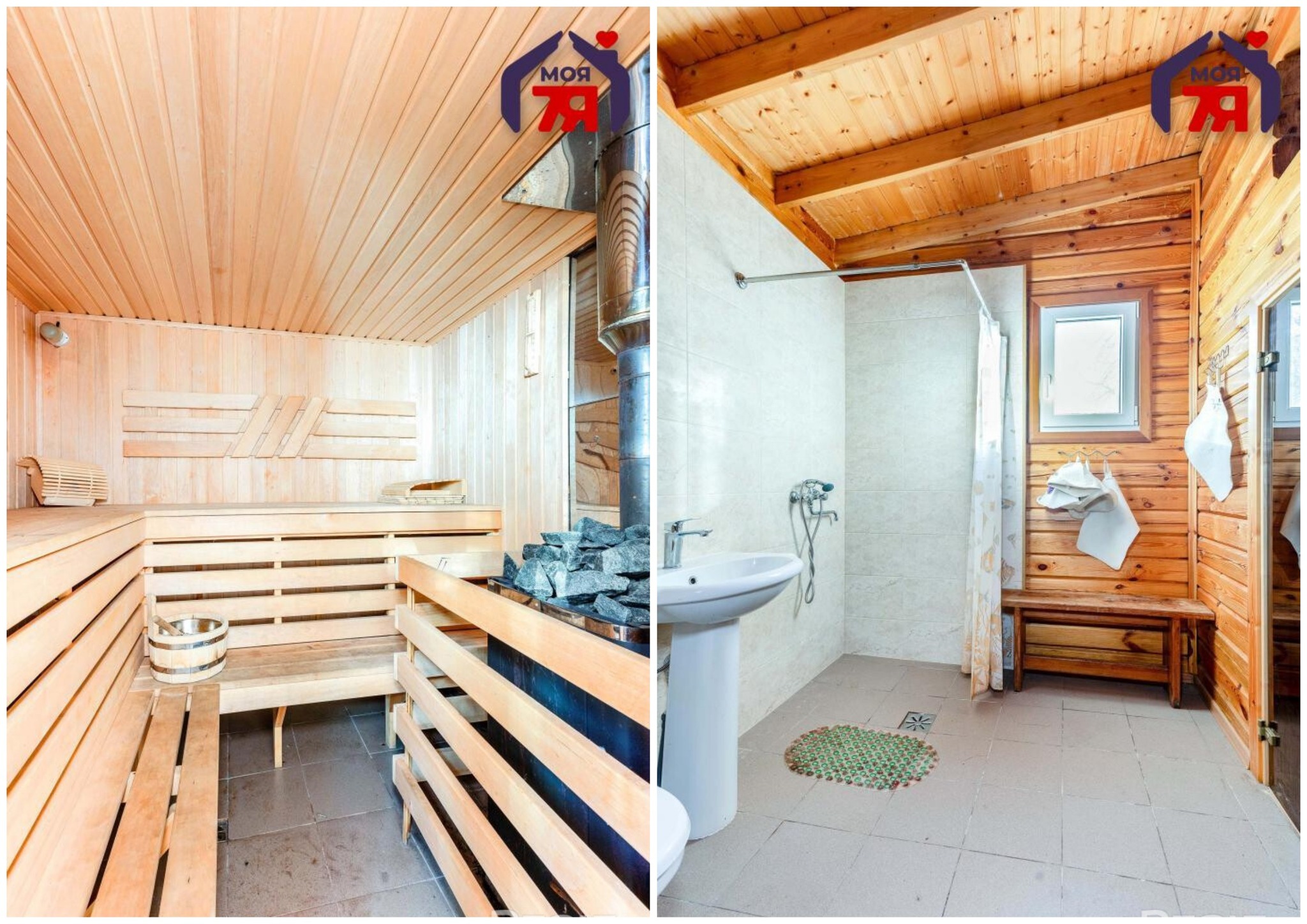 Отдельная постройка — это гостевой дом с баней. Здесь есть парилка на дровах и комната отдыха, где можно расслабиться после парной или даже оставить гостей на ночевку. Туалет и душ с бойлером — также предусмотрены.