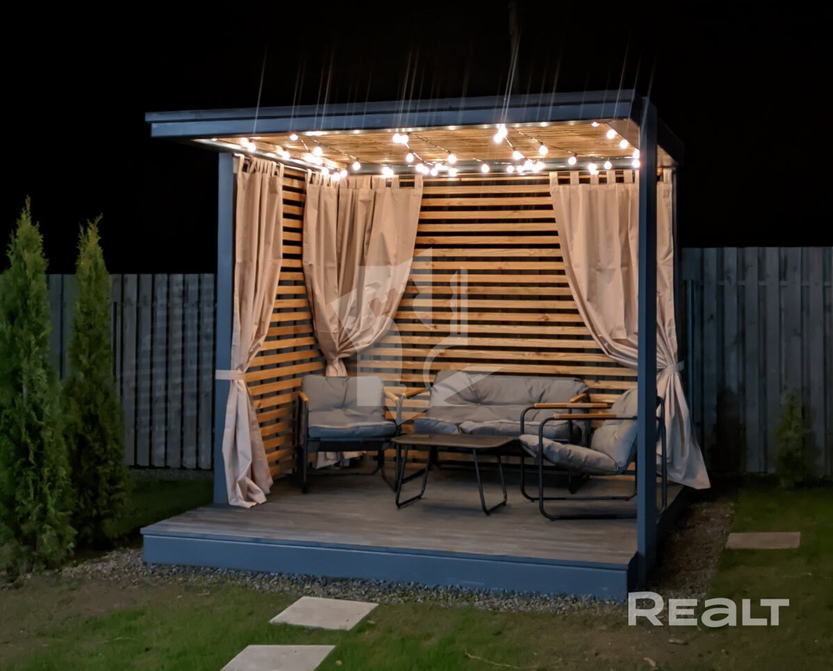 В СТ, что находится в Минском районе, продается одноэтажный современный дом для жизни. Место может заменить квартиру. Тут обустроены две спальни, есть просторная кухня-гостиная с мебелью и техникой, а также все необходимые коммуникации. Из дополнительных плюсов: большая терраса, беседка и ухоженный участок. Оцените сами.