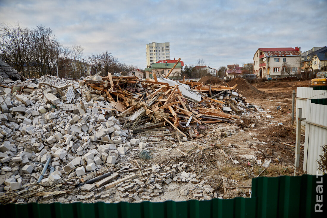 Сегодня подготовка площадки под стройку идет полным ходом. Основной объем частных домов уже снесен. Строителям осталось ликвидировать остатки одной деревянной хаты и вывезти весь мусор.