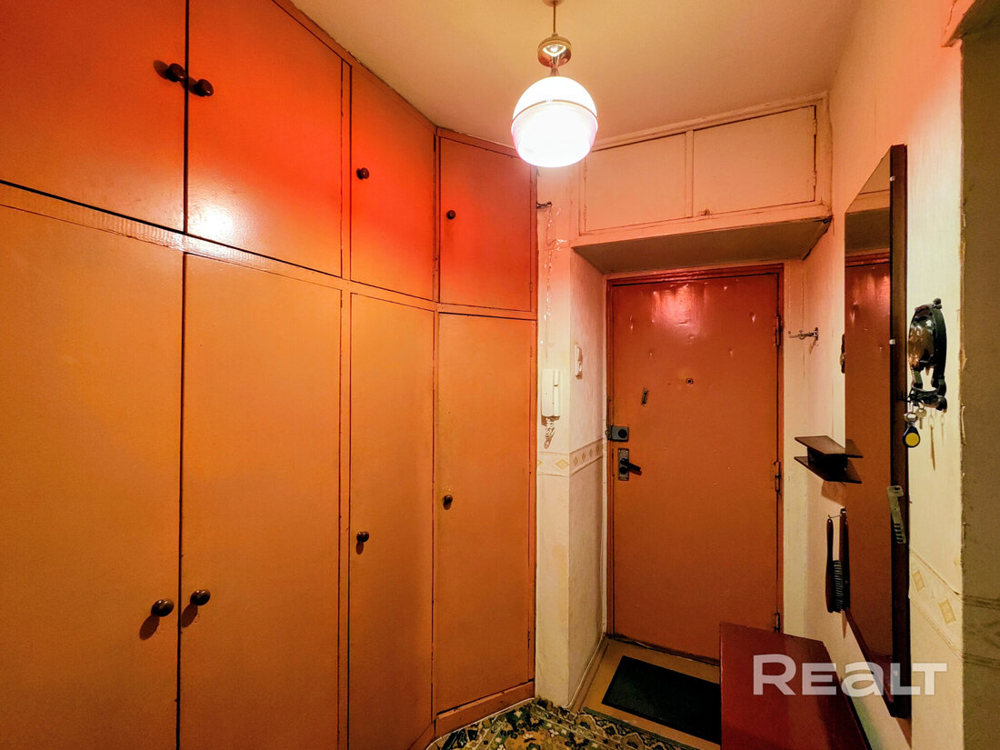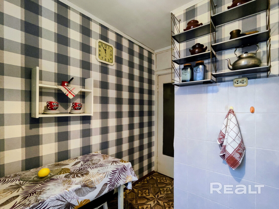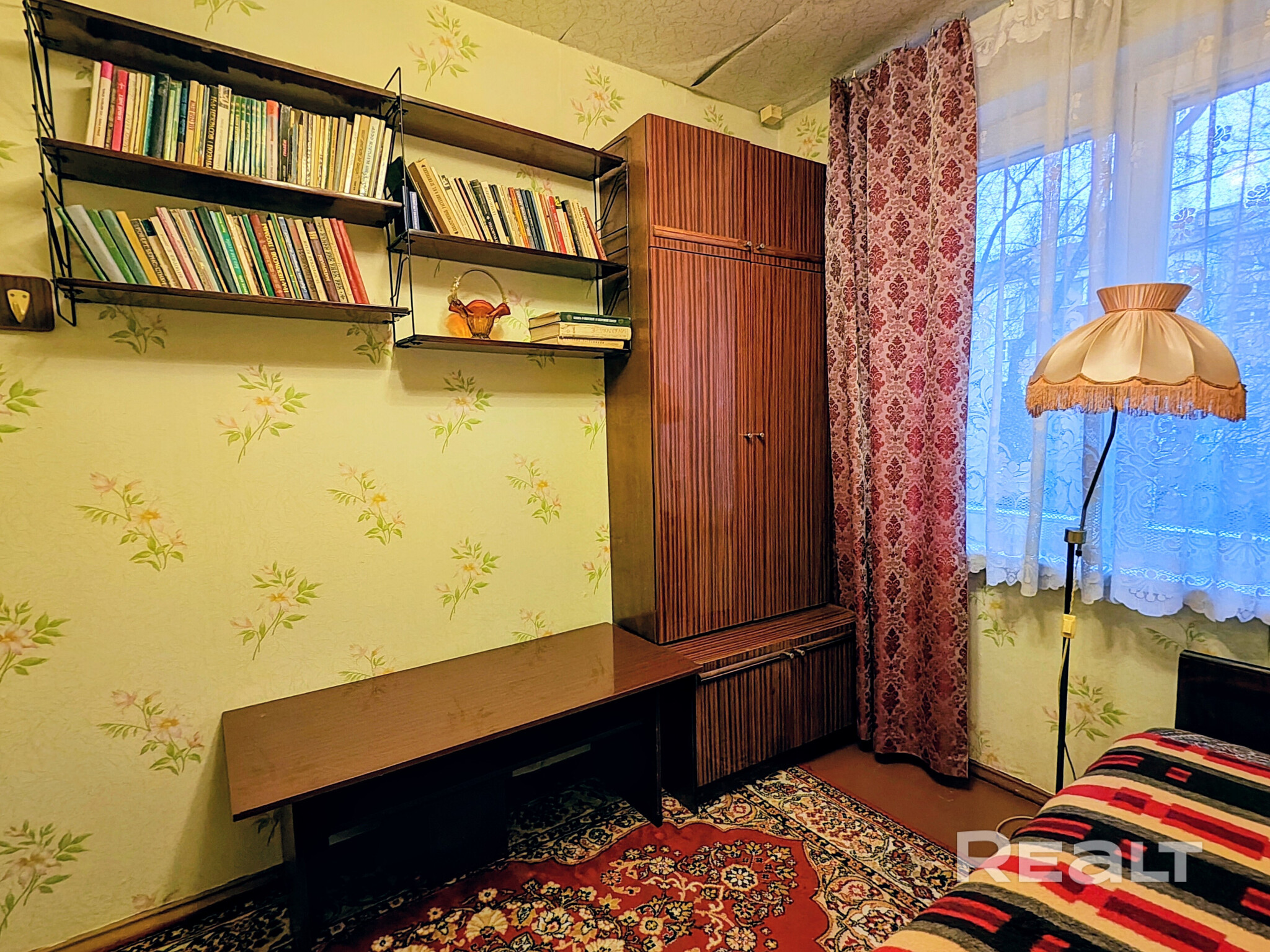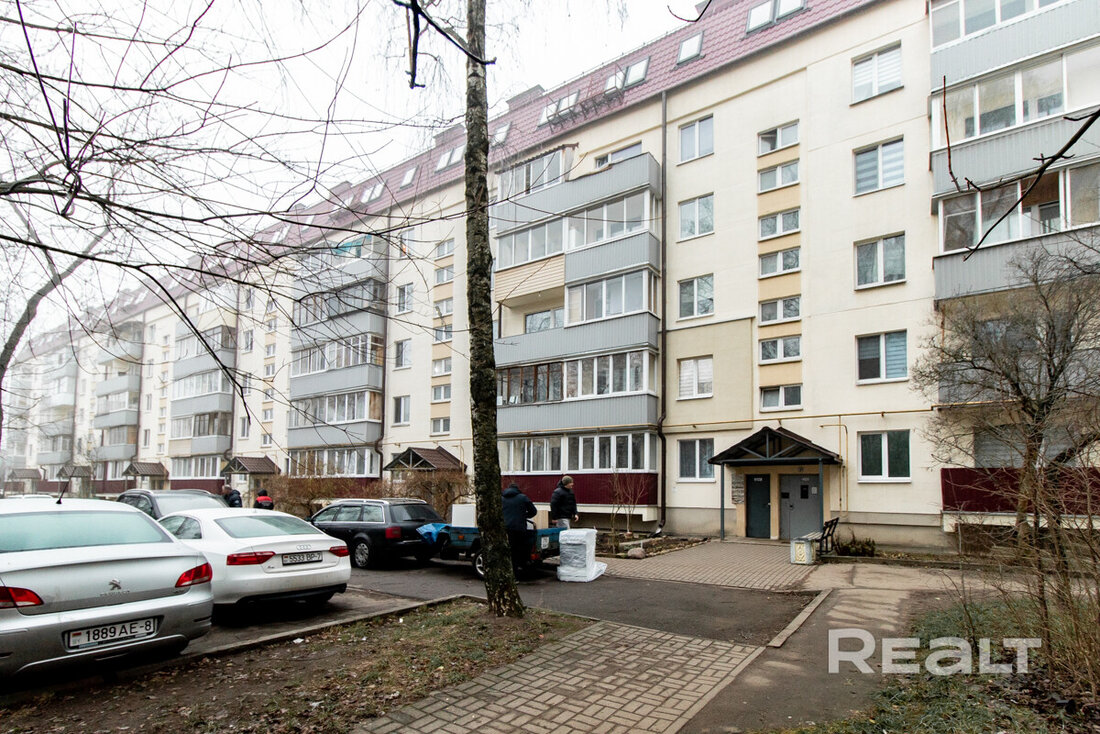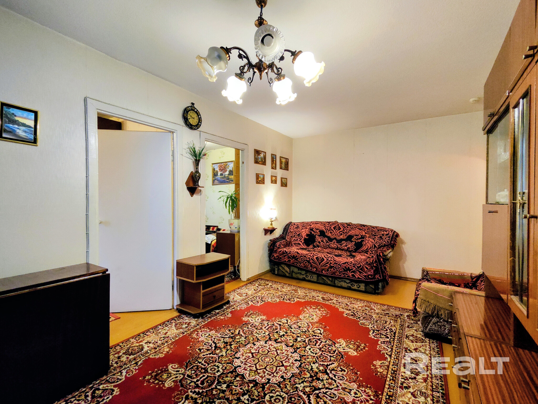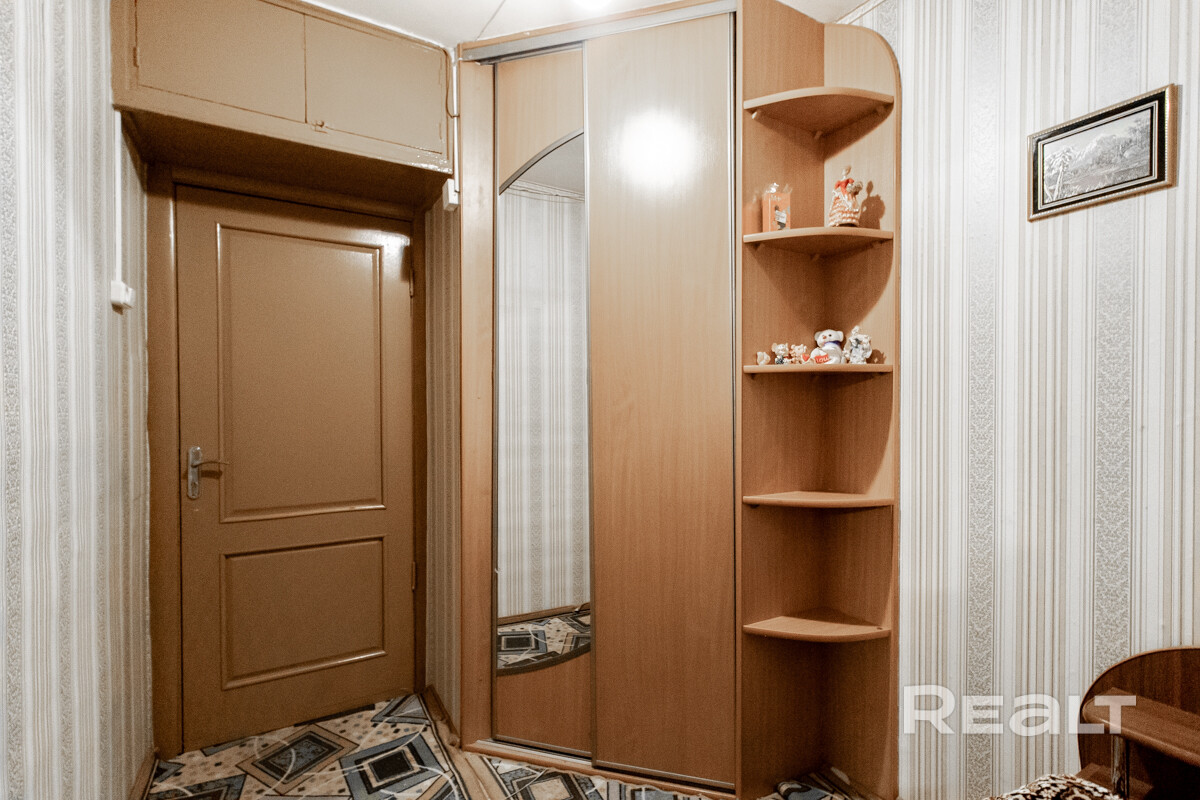 Шестиэтажный дом на Янки Мавра, 33 был построен в 1972 году. В ходе капремонта была надстроена жилая мансарда. На пятом этаже продается трехкомнатная квартира в 49,7 м². Площадь кухни составляет 6,2 метра.