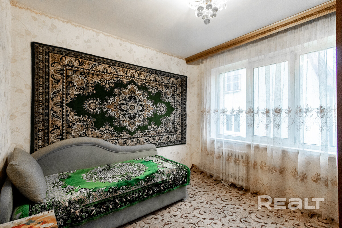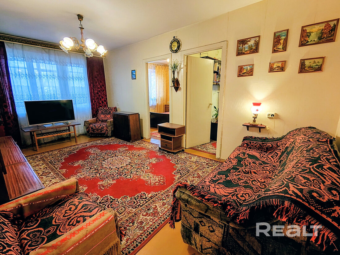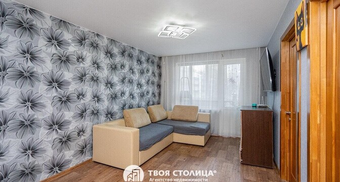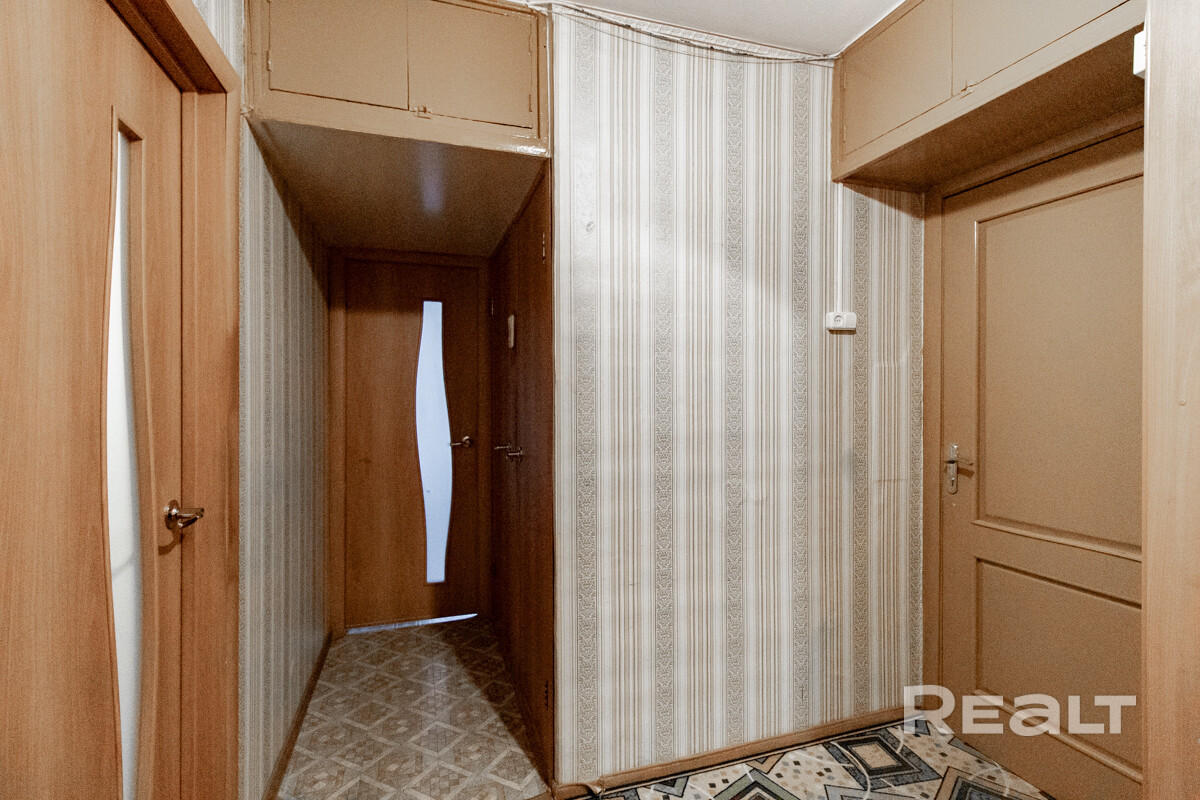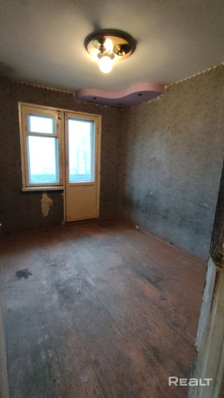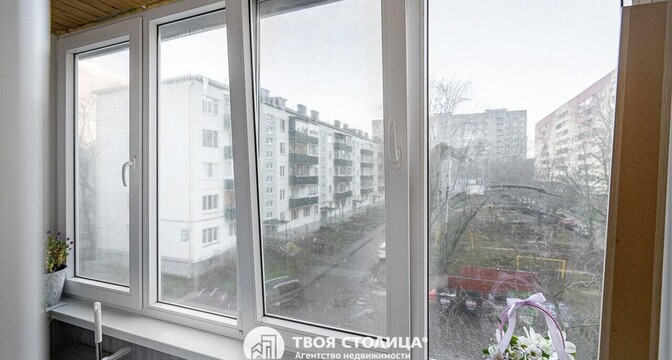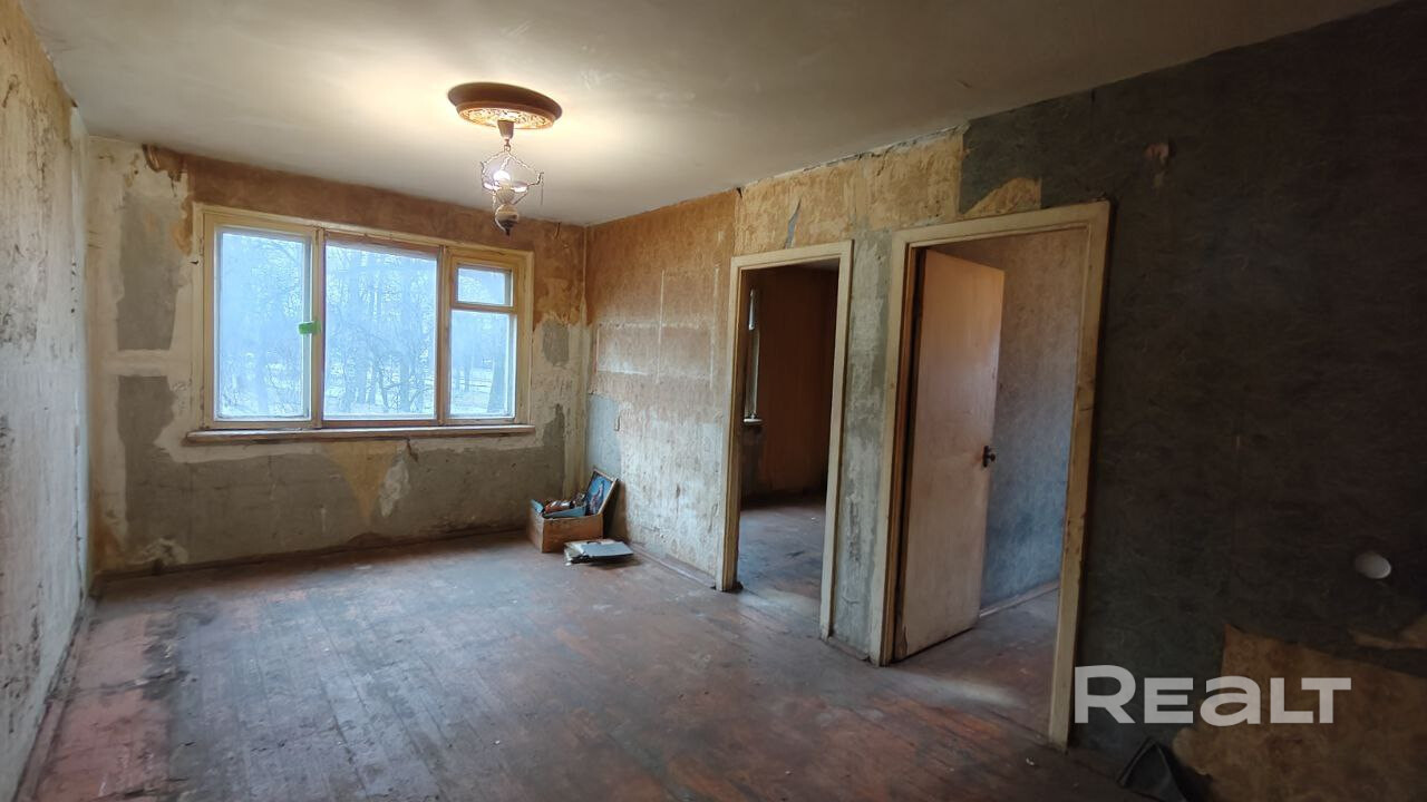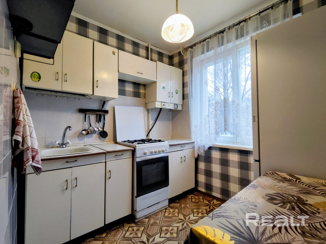 Шестиэтажный дом на Янки Мавра, 33 был построен в 1972 году. В ходе капремонта была надстроена жилая мансарда. На пятом этаже продается трехкомнатная квартира в 49,7 м². Площадь кухни составляет 6,2 метра.