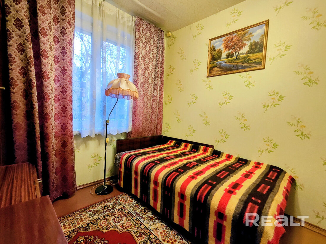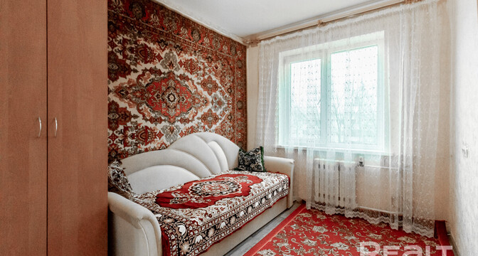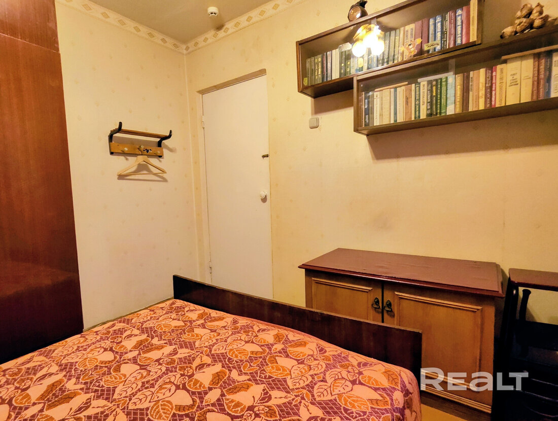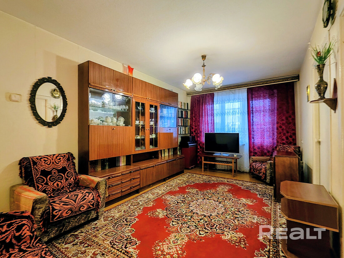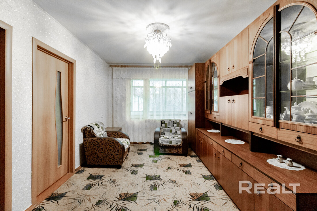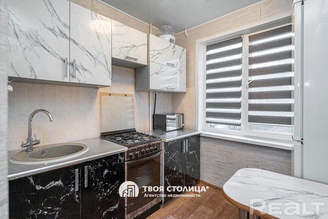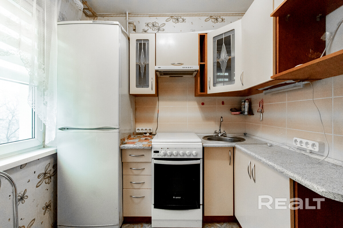 Шестиэтажный дом на Янки Мавра, 33 был построен в 1972 году. В ходе капремонта была надстроена жилая мансарда. На пятом этаже продается трехкомнатная квартира в 49,7 м². Площадь кухни составляет 6,2 метра.