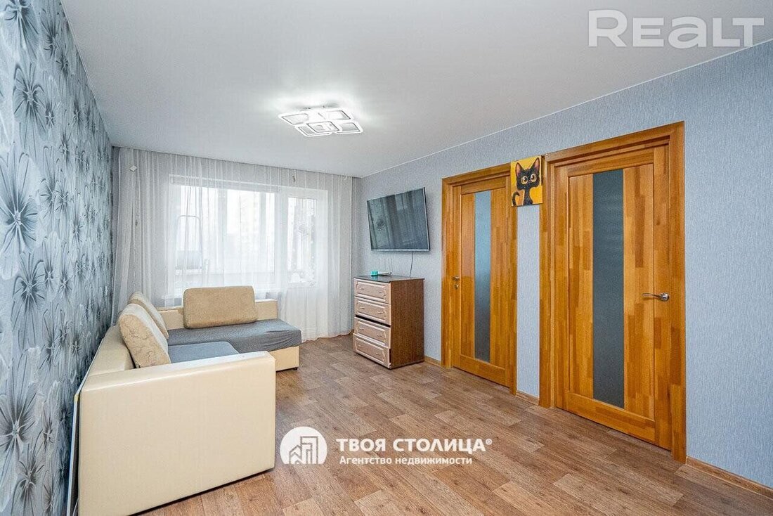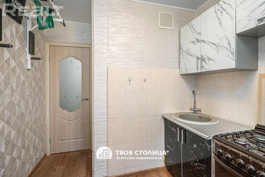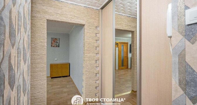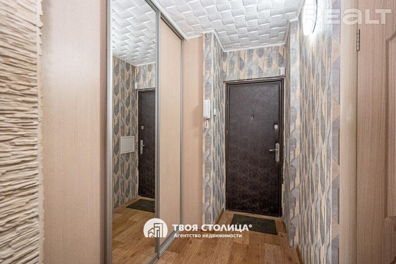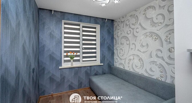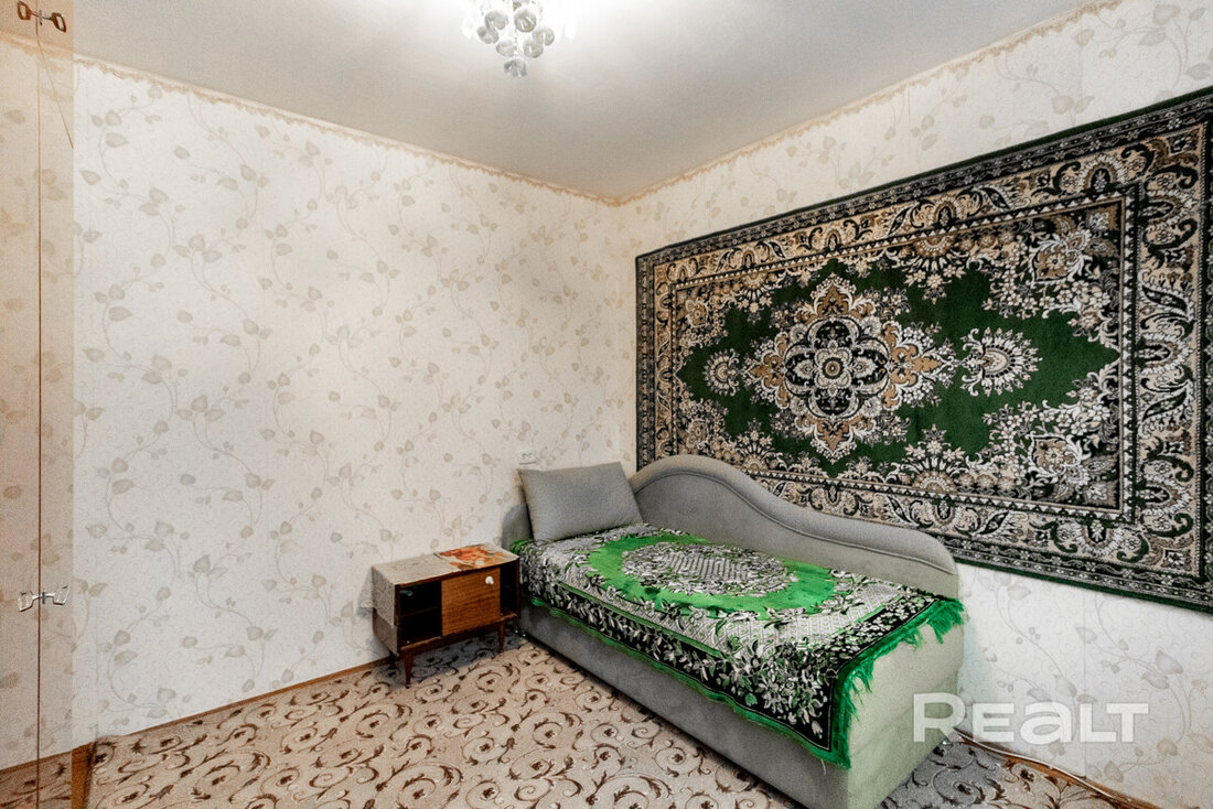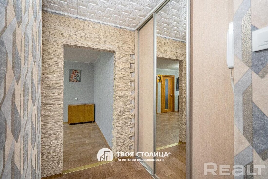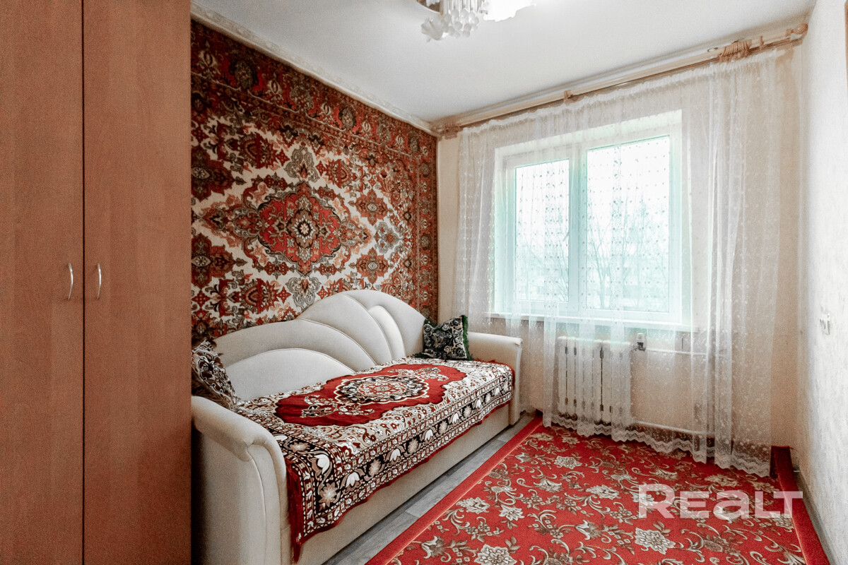 Шестиэтажный дом на Янки Мавра, 33 был построен в 1972 году. В ходе капремонта была надстроена жилая мансарда. На пятом этаже продается трехкомнатная квартира в 49,7 м². Площадь кухни составляет 6,2 метра.