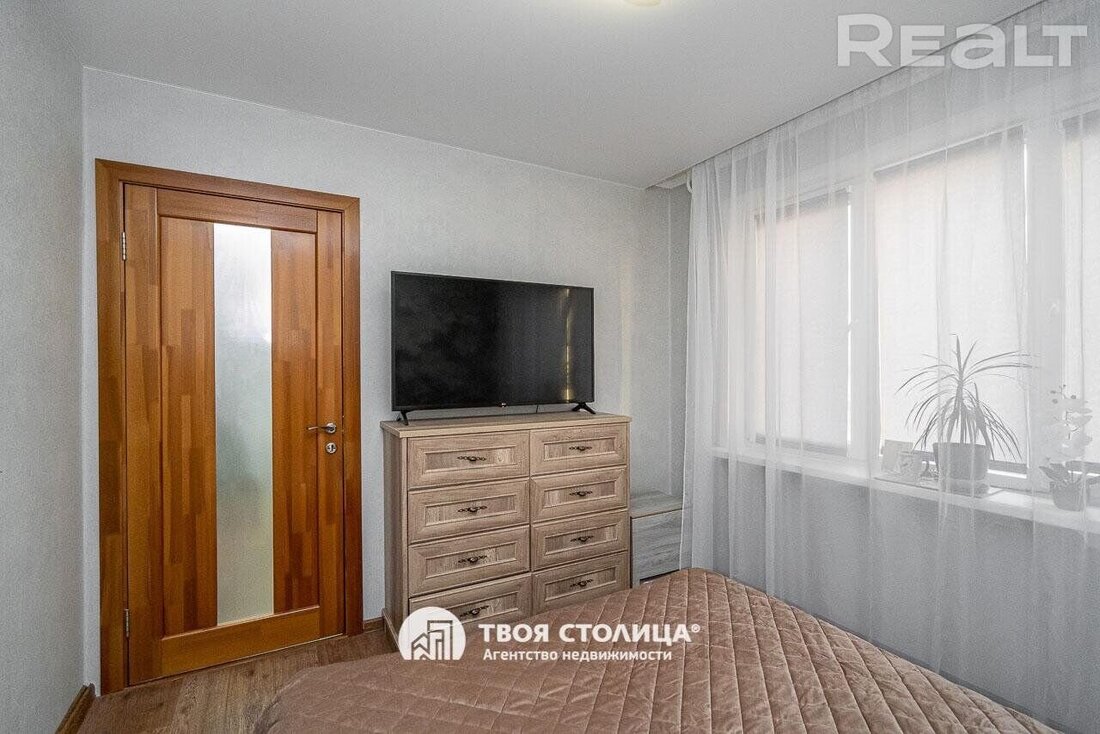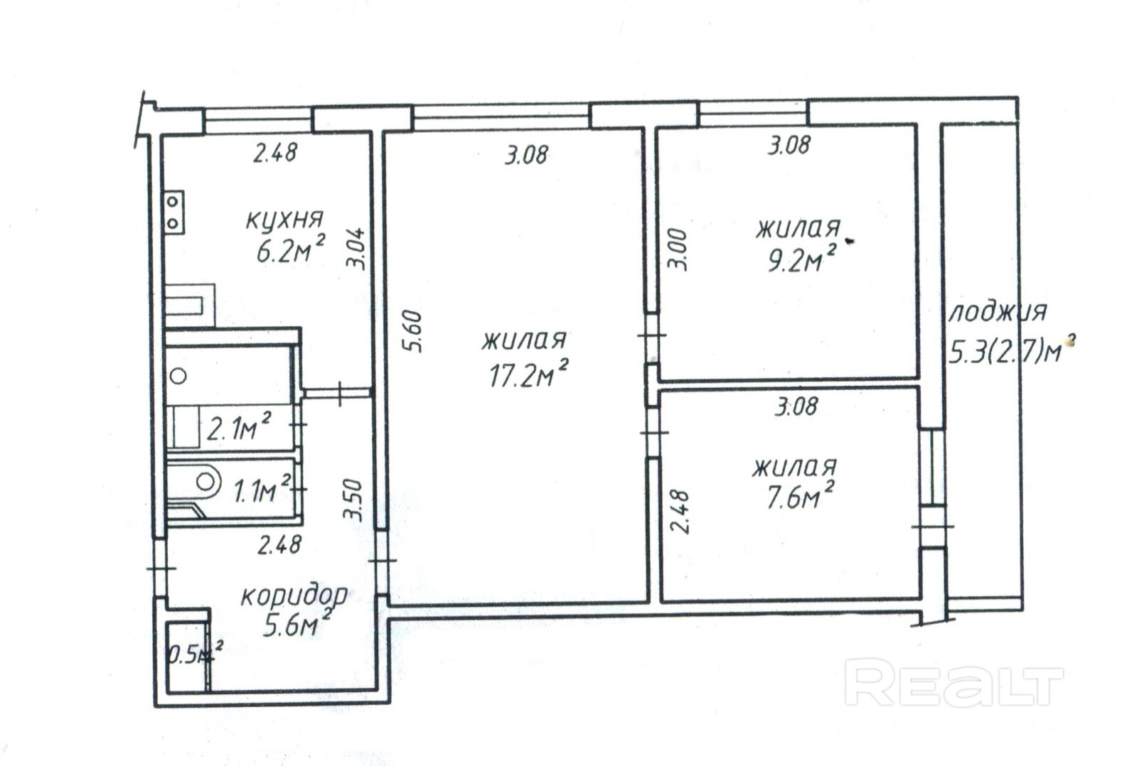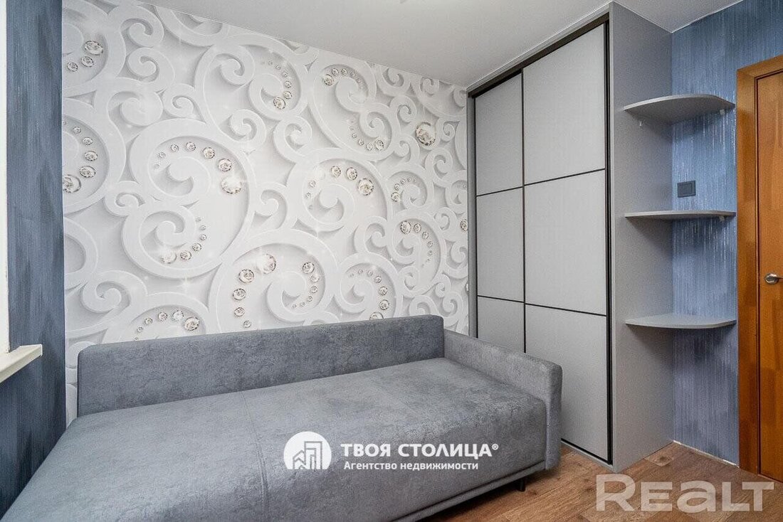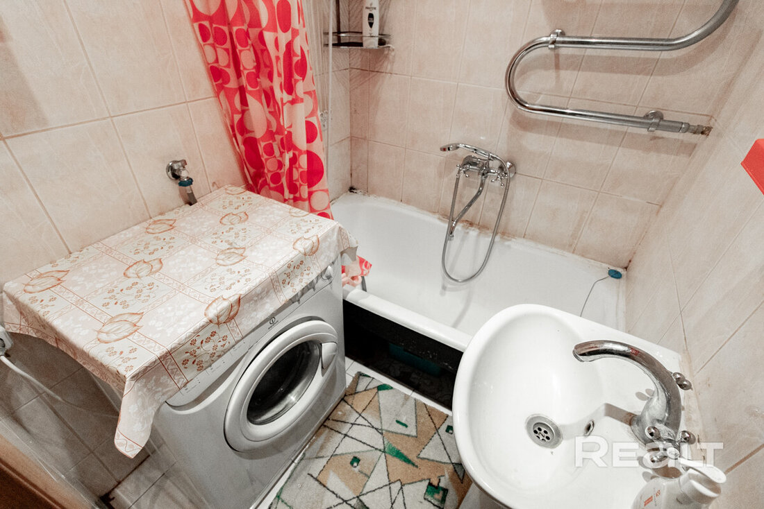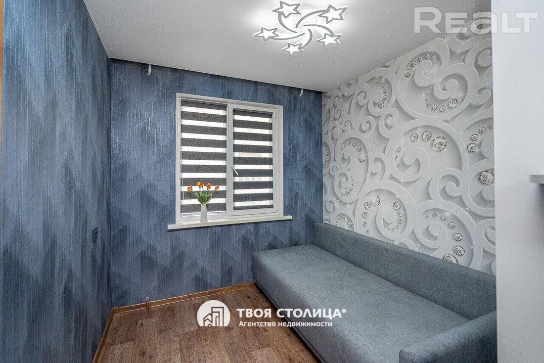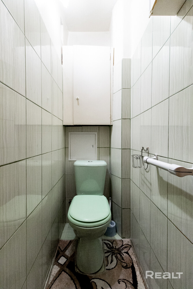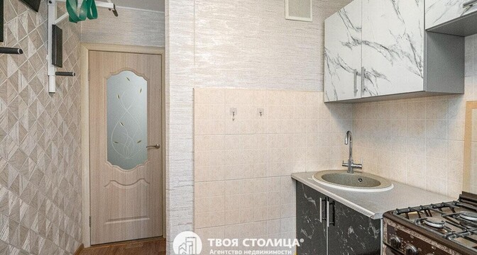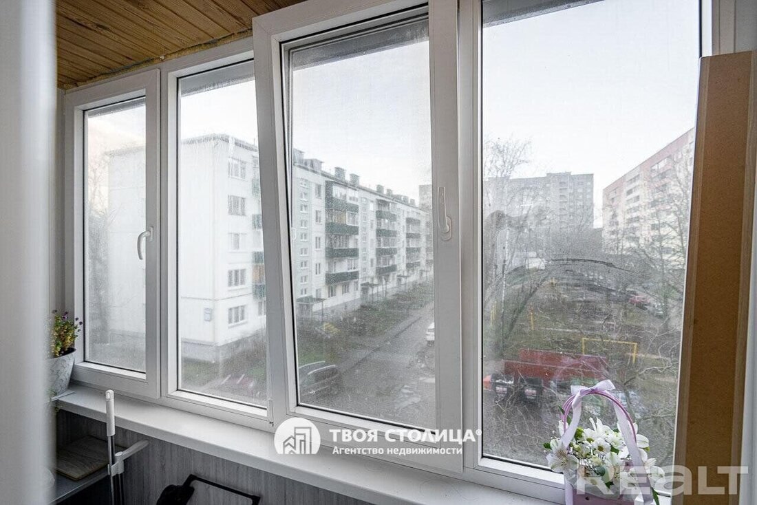 Шестиэтажный дом на Янки Мавра, 33 был построен в 1972 году. В ходе капремонта была надстроена жилая мансарда. На пятом этаже продается трехкомнатная квартира в 49,7 м². Площадь кухни составляет 6,2 метра.