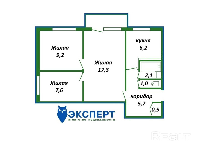 Пятиэтажный дом на Плеханова, 67 был построен в 1971 году, а в 2020-м тут прошел капремонт. Здесь выставляется квартира на третьем этаже. Она занимает 49,5 м². Из этого 6,2 метра приходится на кухню.