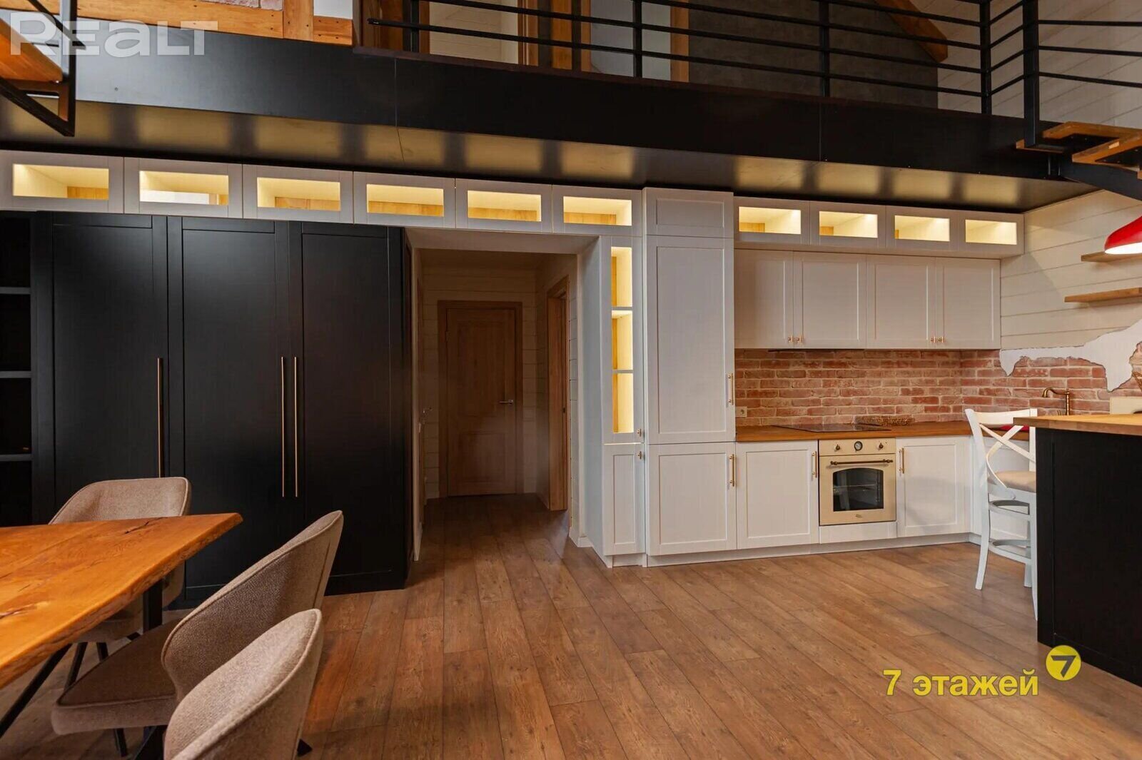 Кухня оборудована варочной панелью, духовым шкафом и холодильником. Здесь имеется как небольшой остров, так и полноценная столовая зона.