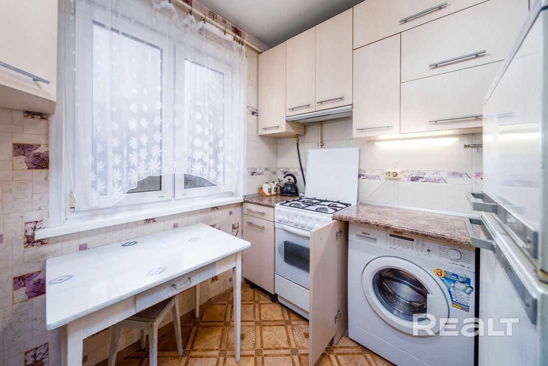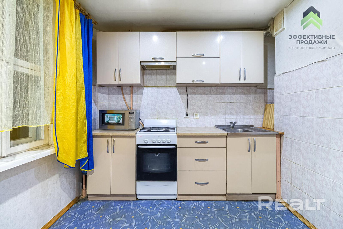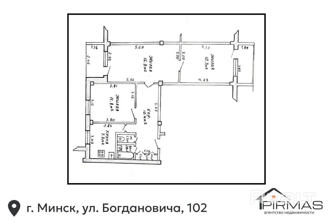 На Максима Богдановича, 102 в 1972 году построили девятиэтажный жилой дом. Сейчас на шестом уровне выставлена на продажу квартира в 70,5 м² с кухней в 7,3 метра.