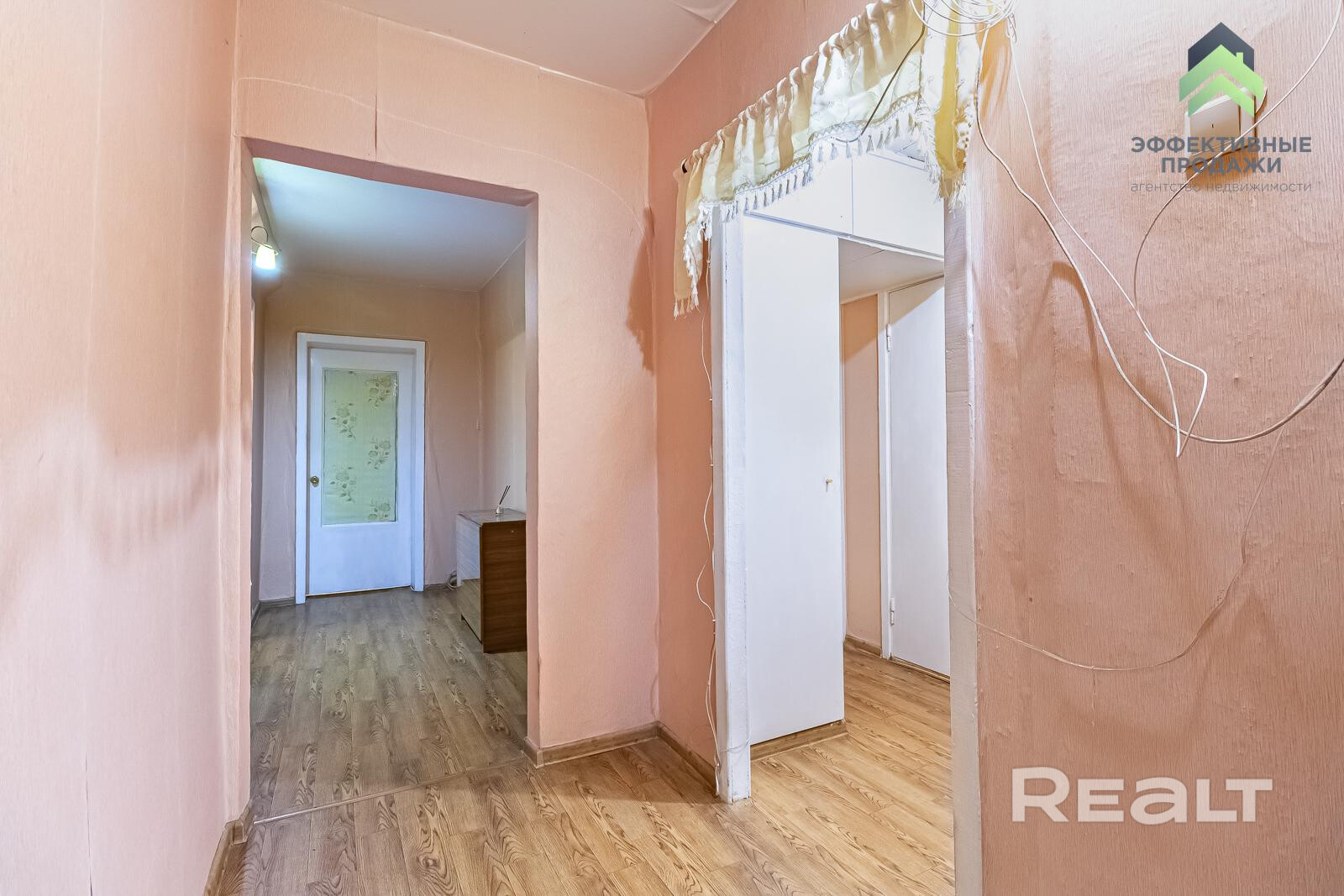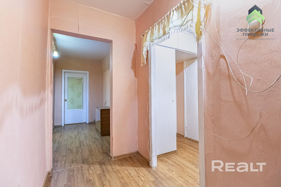 Одна из комнат — проходная. Кстати, в квартире два балкона. Довольно просторный здесь и коридор, есть ниши под кладовую или шкафы.