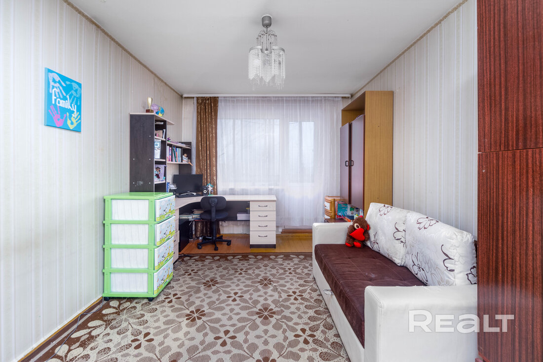 Как правило, квартиры с большим количеством комнат отличаются стоимостью квадратного метра — она ниже, чем у более ходовых однушек и двушек. Мы решили посмотреть, с каким ценником за квадрат выставлено на продажу жилье в пределах 100 тысяч долларов. Так получилось (и оно логично), что тут можно выбрать только трехкомнатные квартиры. Посмотрите, как они выглядят.
