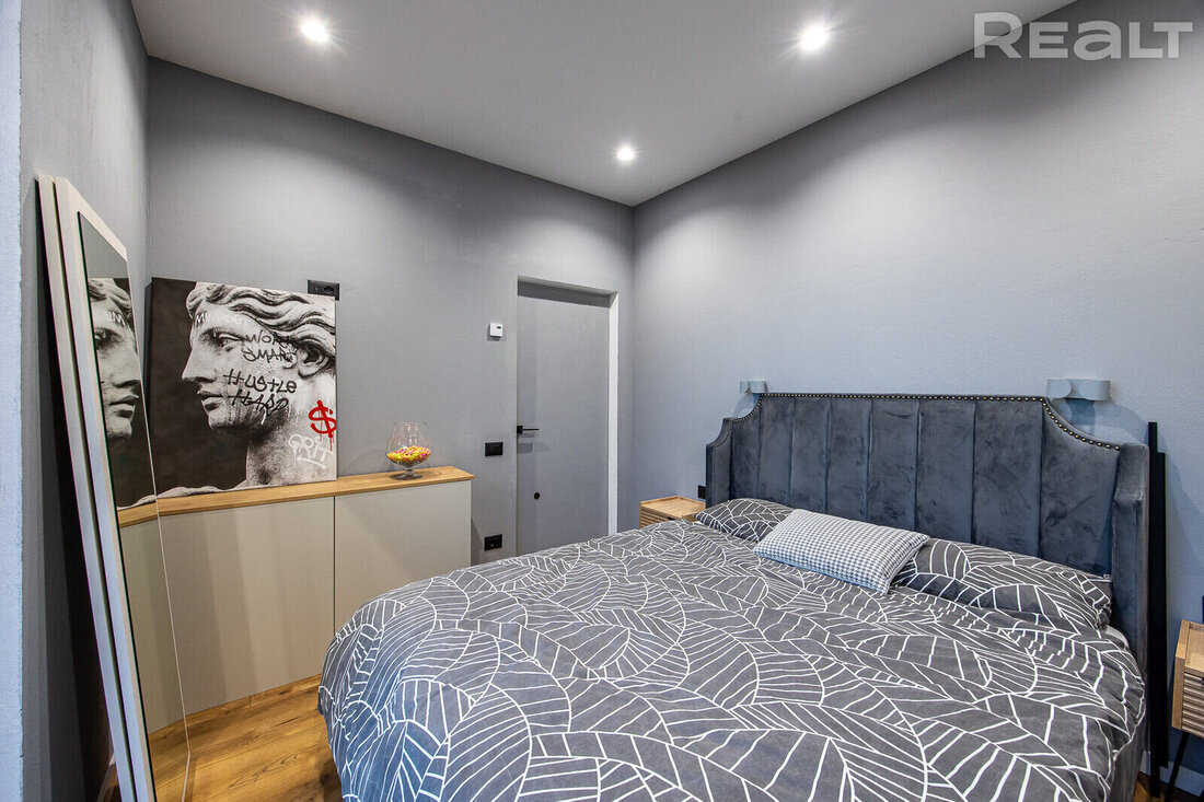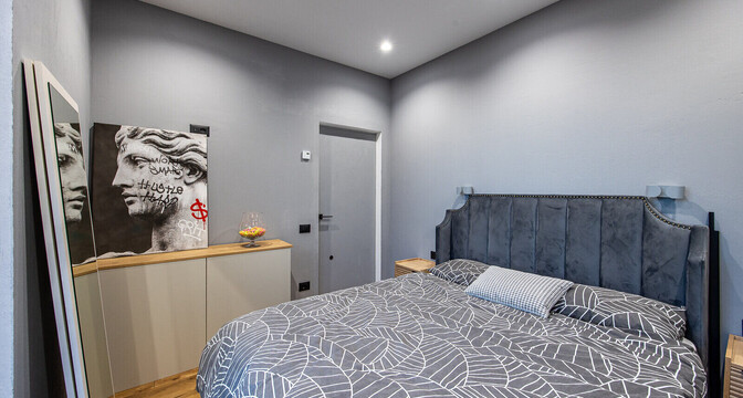 На втором этаже обставлены три спальни. В самой большой есть выход на балкон, в комнате стоит ванна с подсветкой. Также эта комната делит одну гардеробную с соседней спальней. С другой стороны тоже есть небольшой балкон, на который можно попасть с двух комнат.