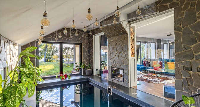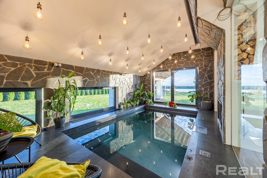 В Столбцовском районе можно купить дом, который, без преувеличения, можно назвать райским местом. Все дело в том, что стоит он на участке в 1,5 гектара и рядом с озером. Панорамные окна позволяют наслаждаться природой, не выходя из комнат и даже оставаясь в бассейне. А 4 спальни и введенные коммуникации позволяют жить там в любое время года. Посмотрите, как все обустроено.