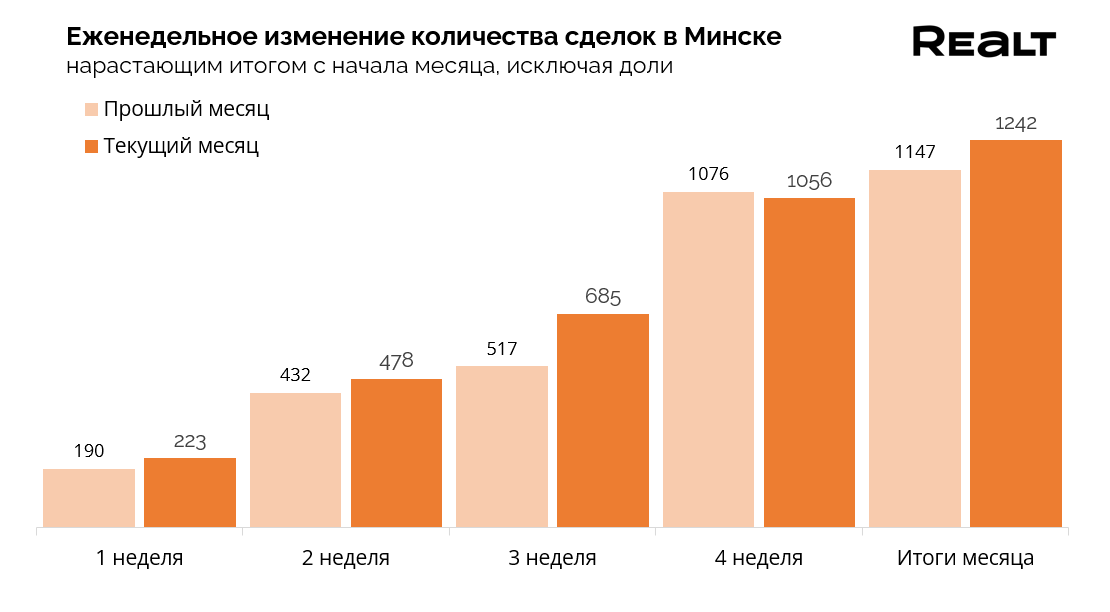 Совокупное количество квартир, которое было доступно в течение прошлой недели для выбора покупателям на вторичном рынке жилья в базе Realt, уменьшилось на 3% или порядка 120 квартир и составило 4,6 тыс. объектов.