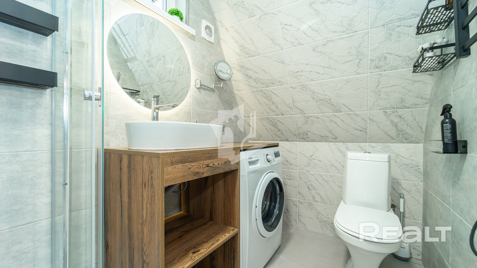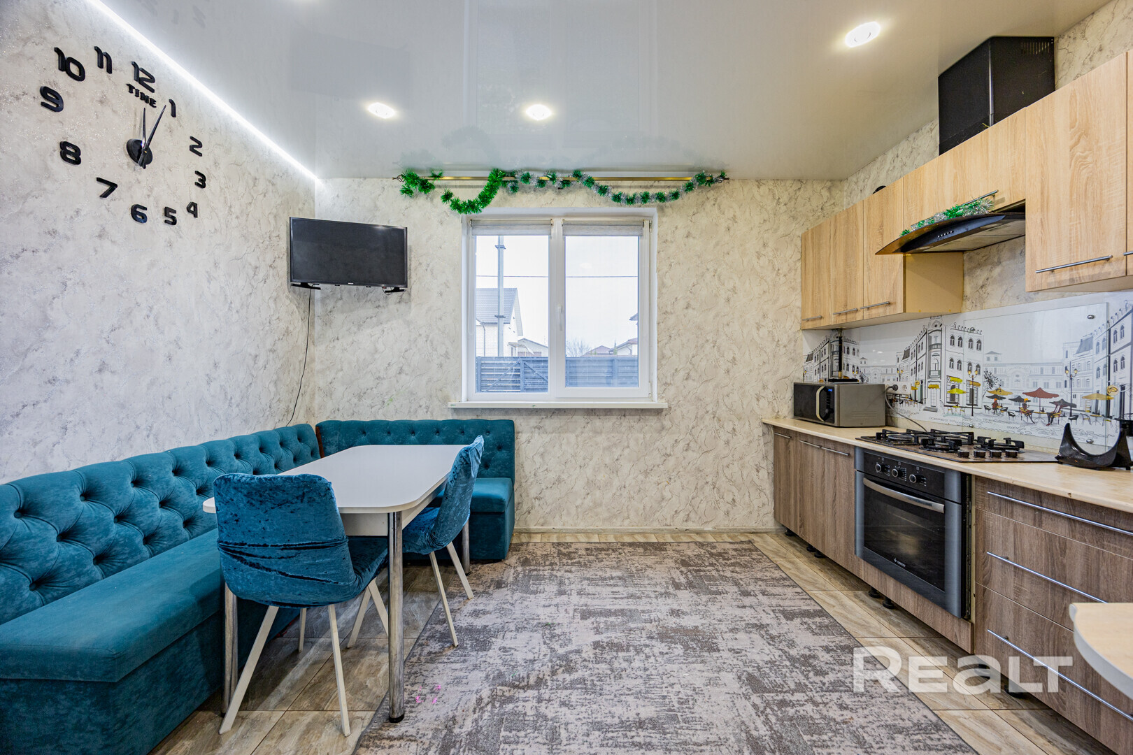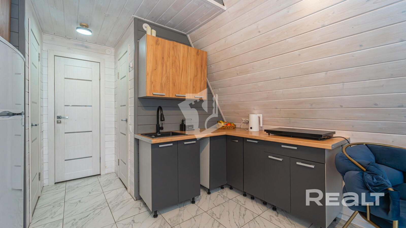 Внутри имеются все удобства: душ и санузел, вода из скважины. Встроенная система «умный дом» обеспечит максимальный комфорт.