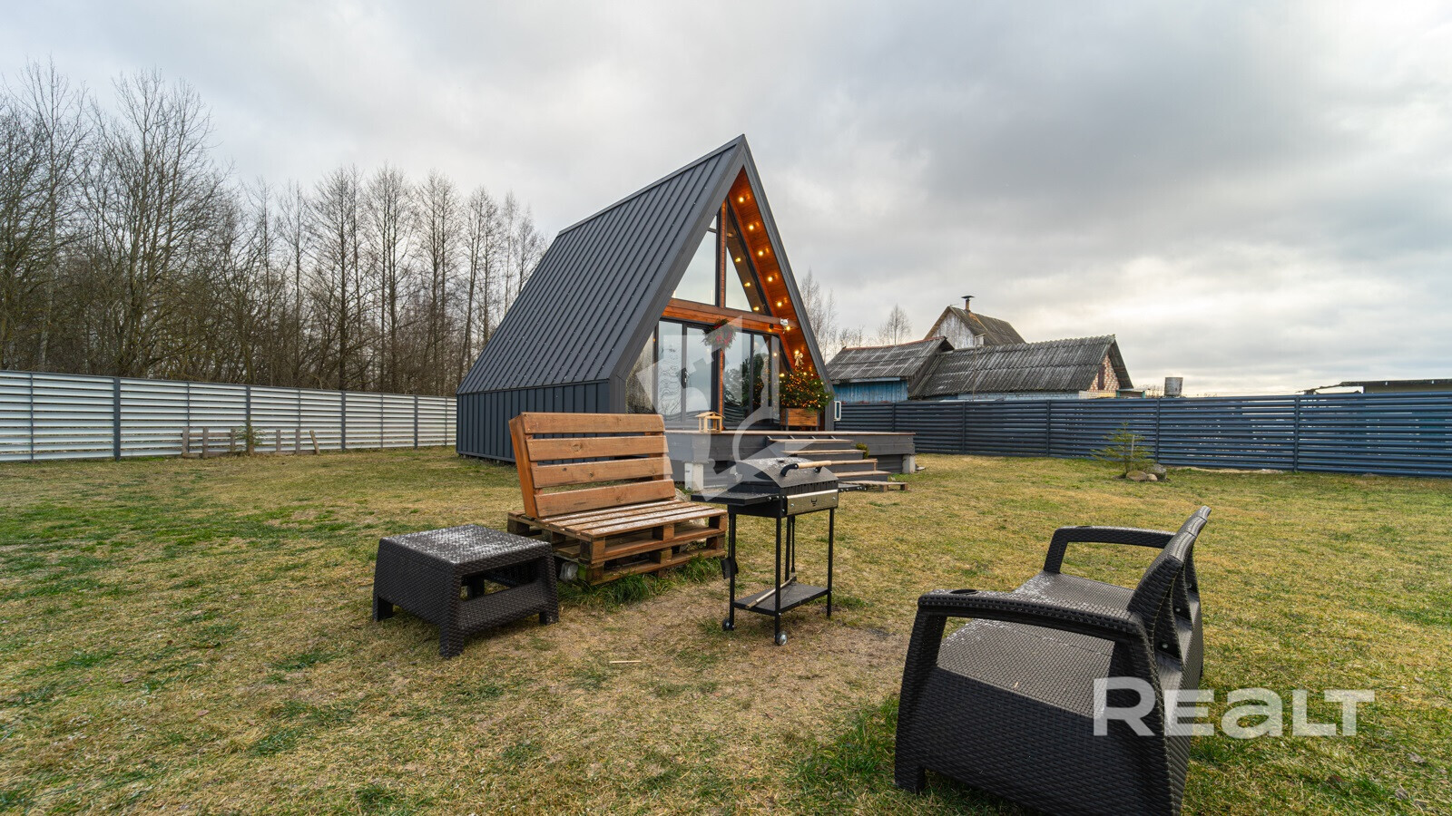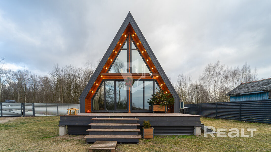 Здесь продается дом в стиле А-фрейм площадью 54,5 м2 — готовое решение под агротуризм.