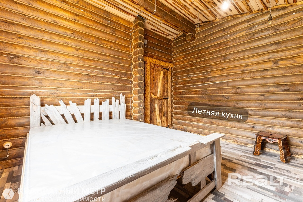 Основной дом деревянный, с авторским интерьером и мебелью, техникой. Общая площадь — 43,9 м2.