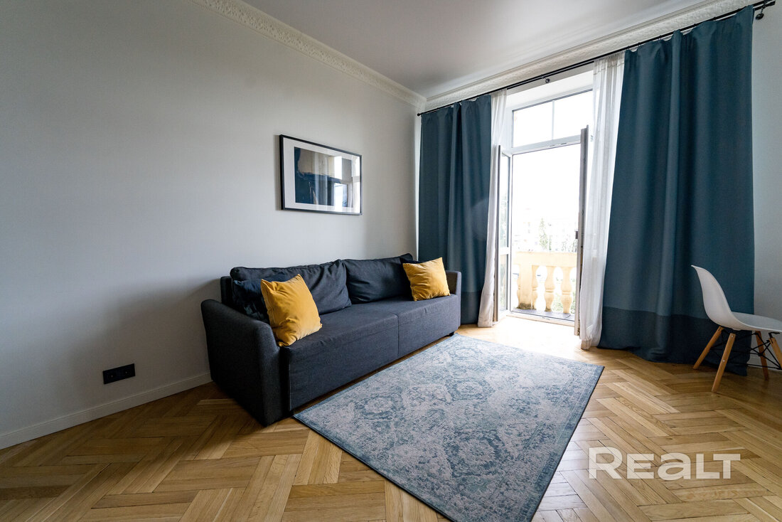На Realt появилась в продаже однокомнатная квартира с видом на Вечный огонь. Это квартира, в которой сочетается аутентичность сталинки и стильный современный ремонт. Сейчас квартиру сдают на сутки, говорит продавец. Посмотрим этот вариант.