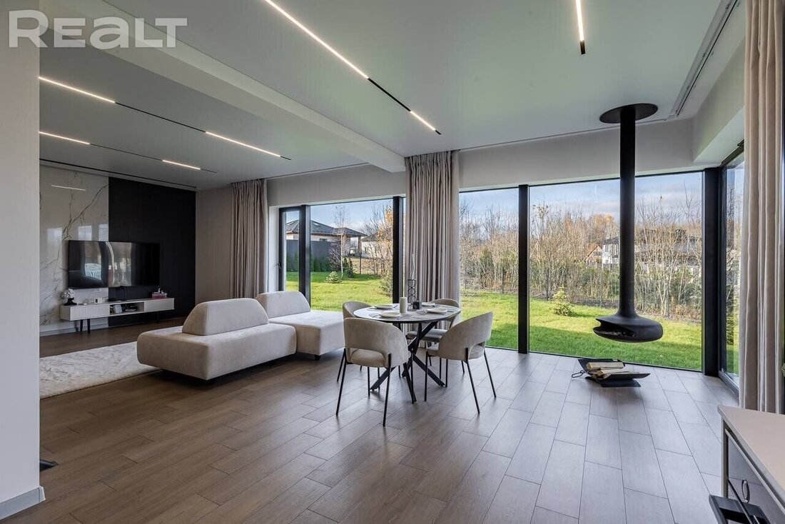 Нашли дом под Минском с минималистичным стильным ремонтом. Монохромные цвета интерьера разбавляют яркие краски природы по другую сторону панорамных окон. Здесь все обустроено для комфортной жизни: есть центральный водопровод, газовое отопление, немаловажно — близкое расположение к столице. Показываем, как выглядит этот дом и сколько за него просят.