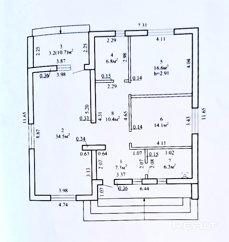 Две жилые комнаты с большими окнами (будущие спальни) отделаны в светлых тонах. Правда, мебели в них нет — новым жильцам придется обставлять их самостоятельно.