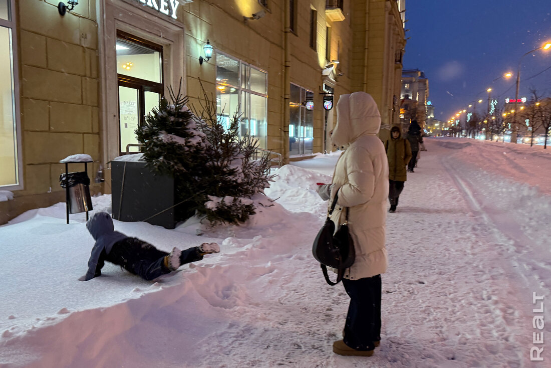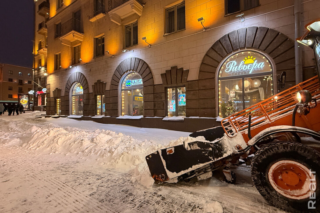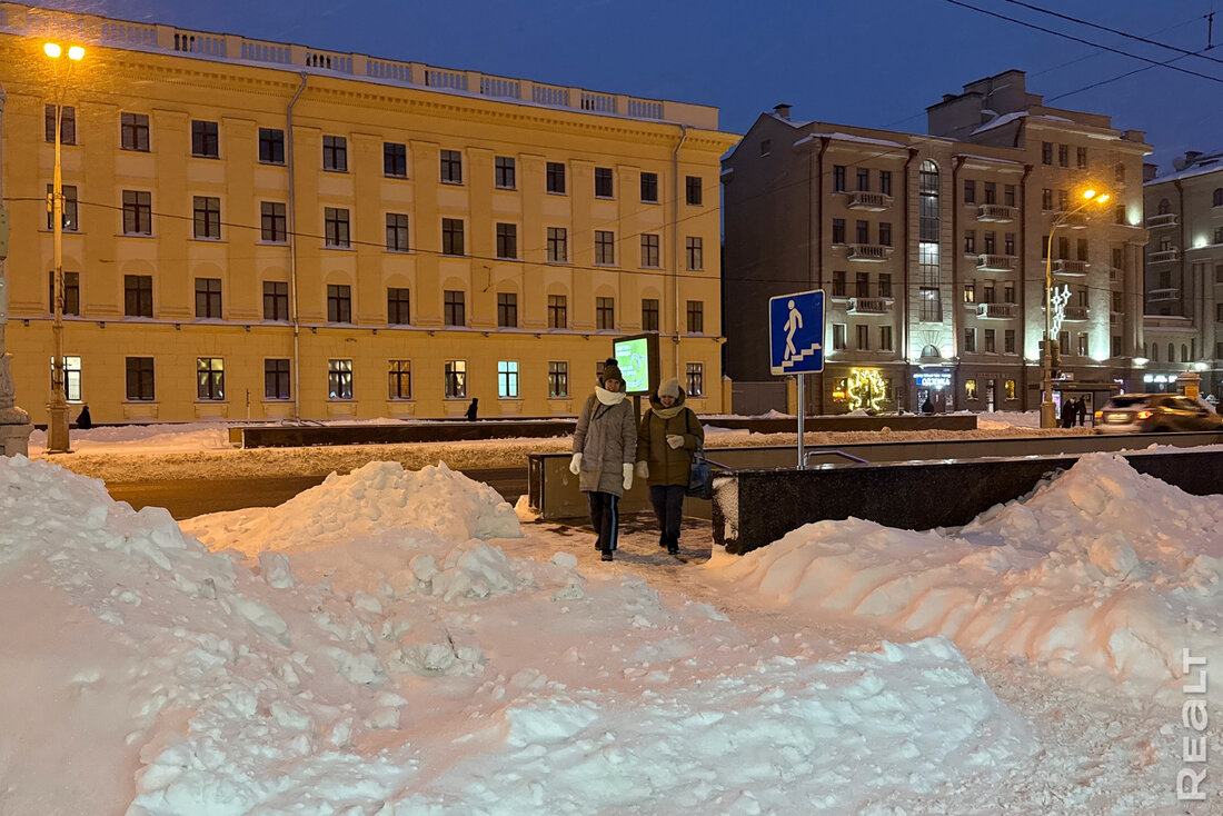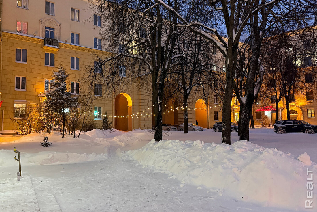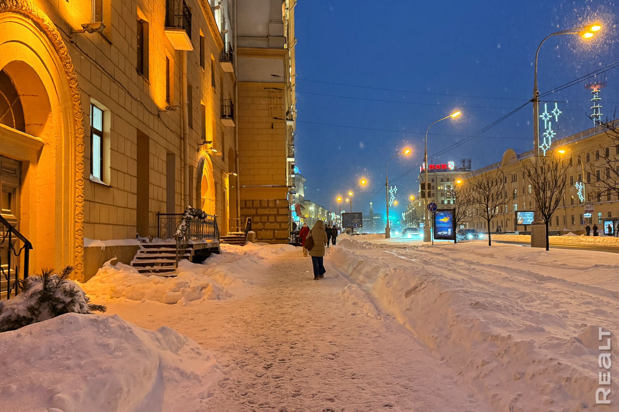 Хотя, конечно, это не только красивая картинка, но и сложности с транспортом. Город расчищают коммунальные службы, да и сами минчане стараются избавиться от снега во дворах, чтобы можно было проехать.