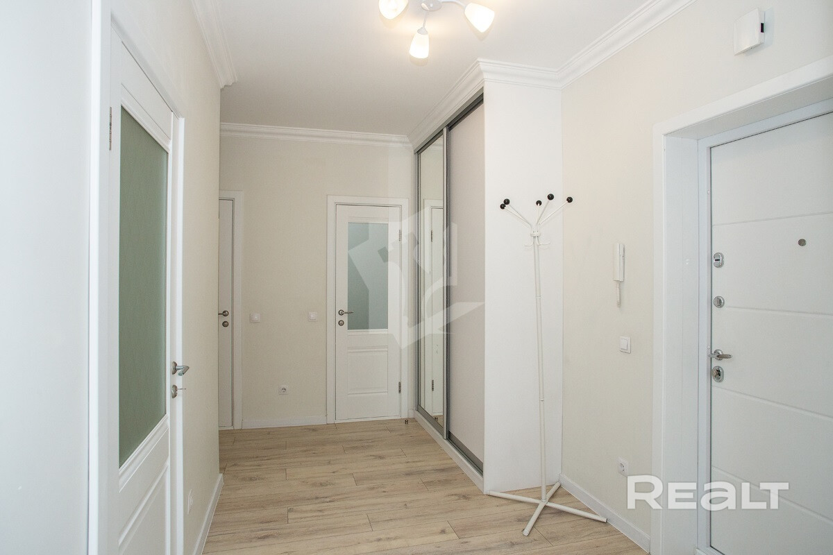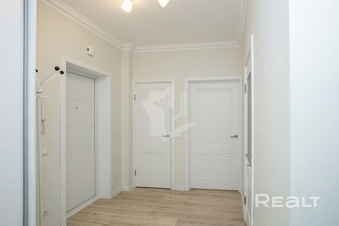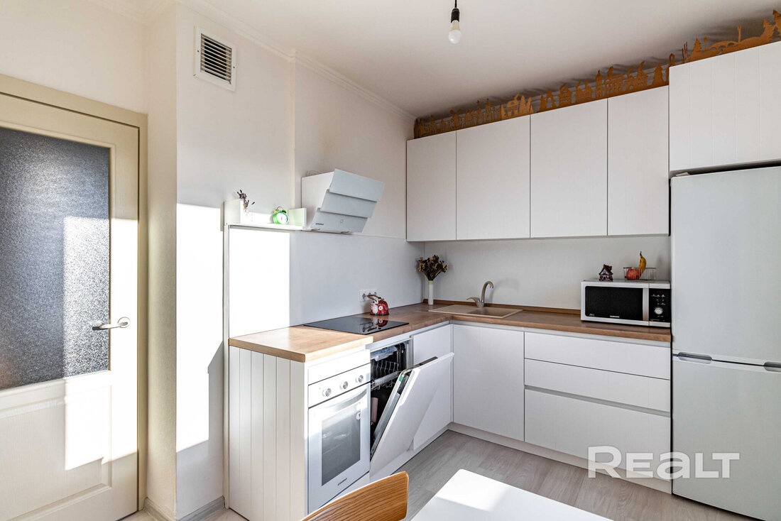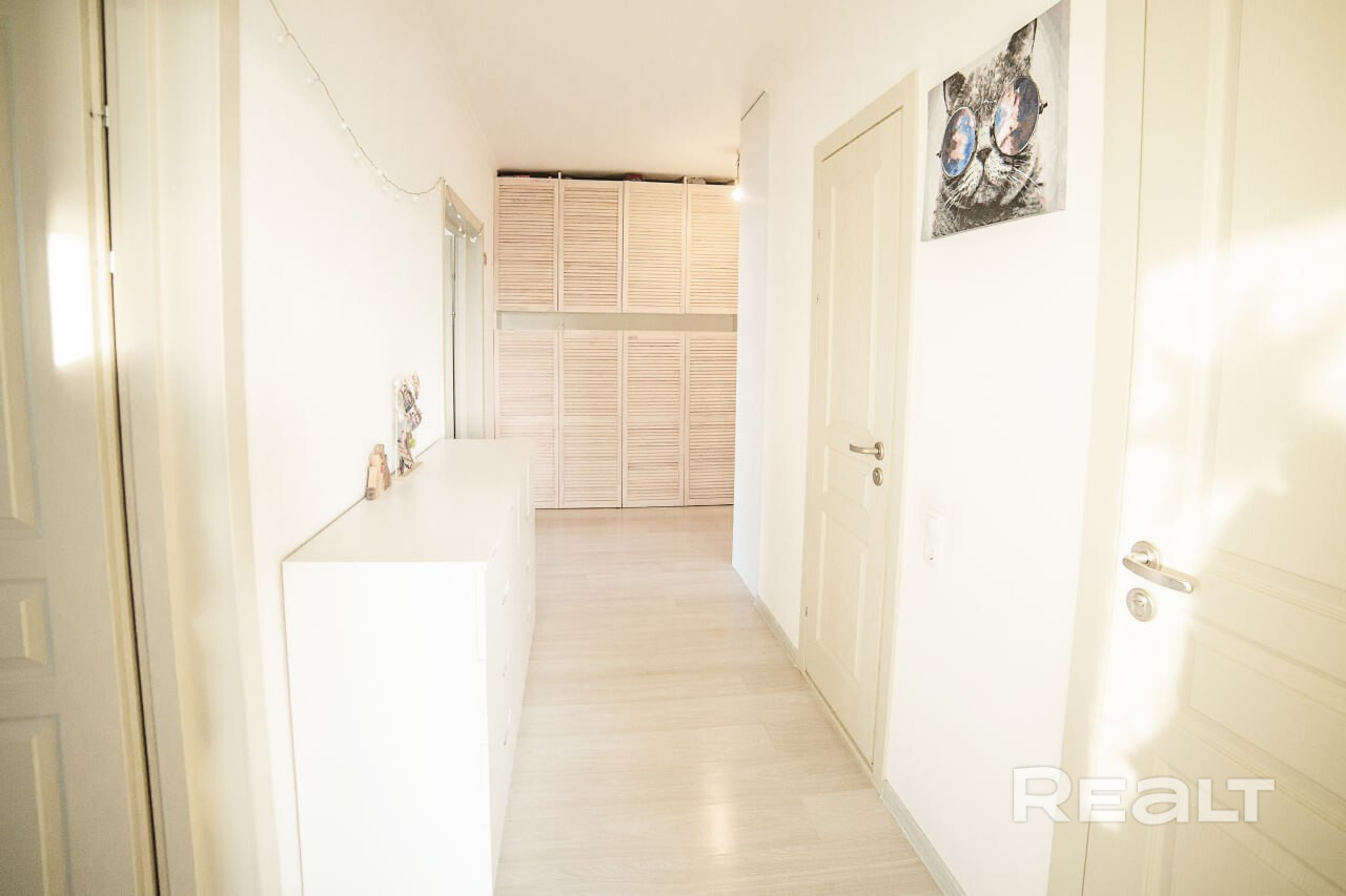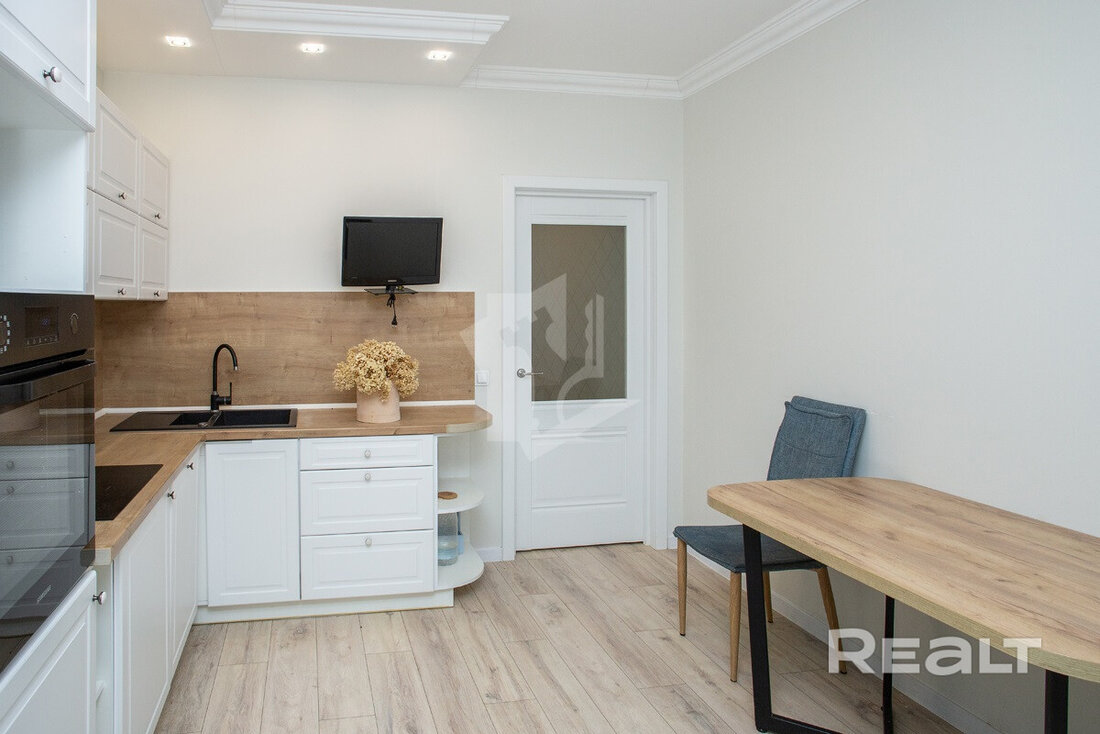 Последняя квартира в подборке находится в доме на Лынькова, 35. Его построили 2016 году в 15 этажей. На 13-м находится двушка. Она занимает 66 квадратов. Из этой площади 10,7 выделено на кухню.