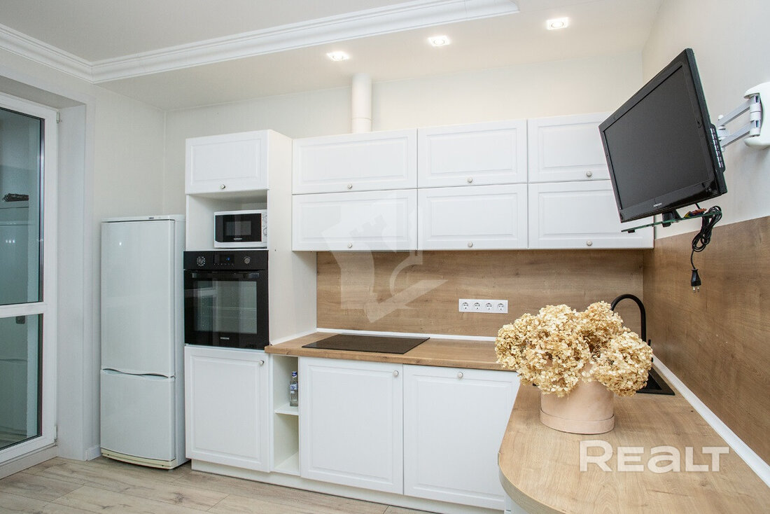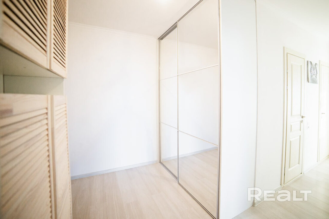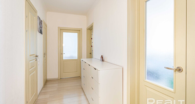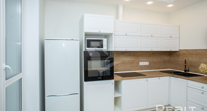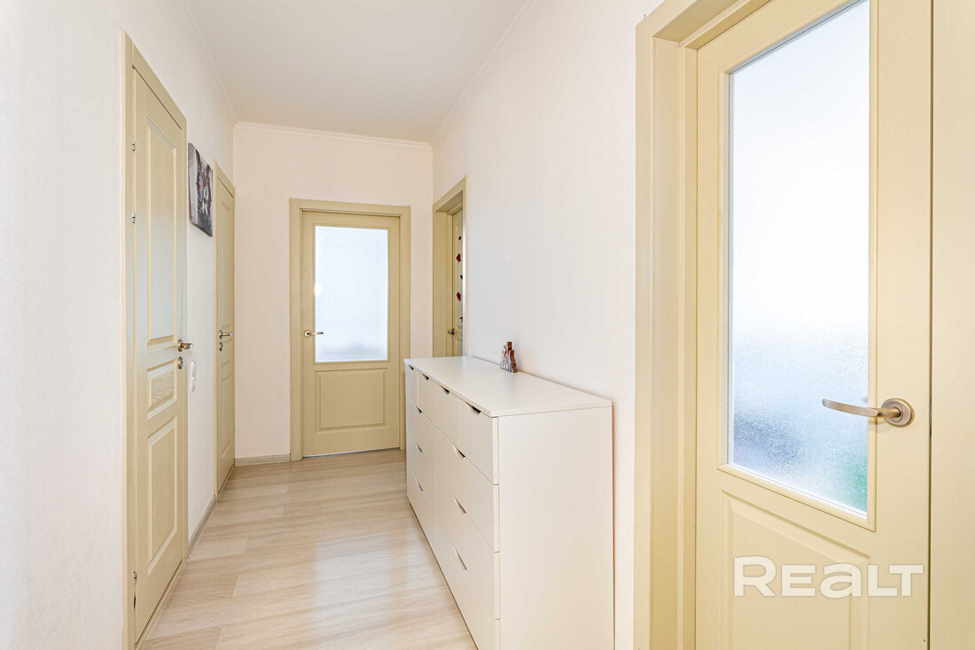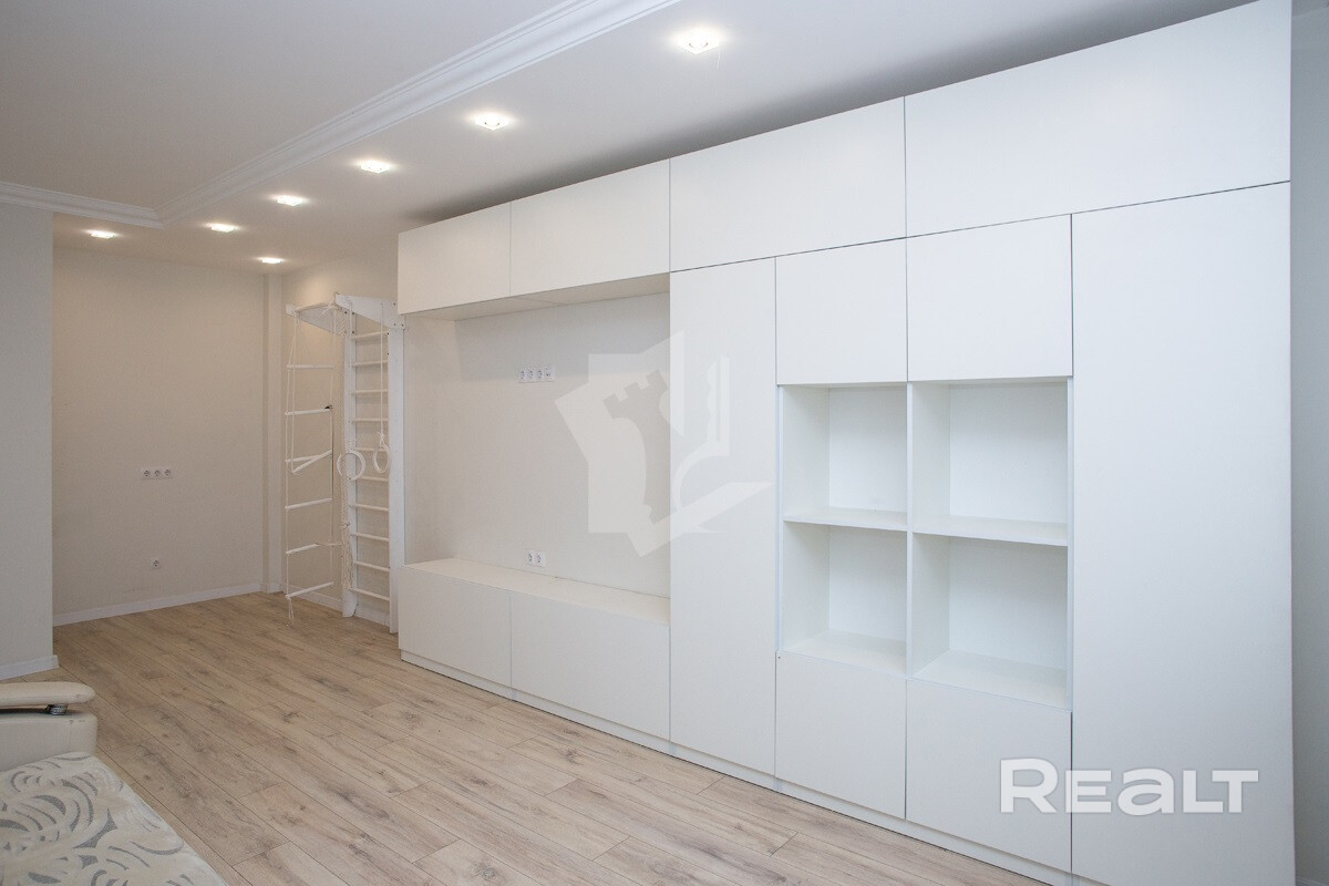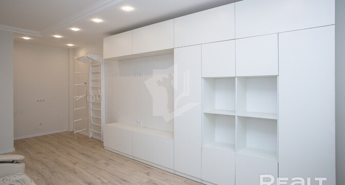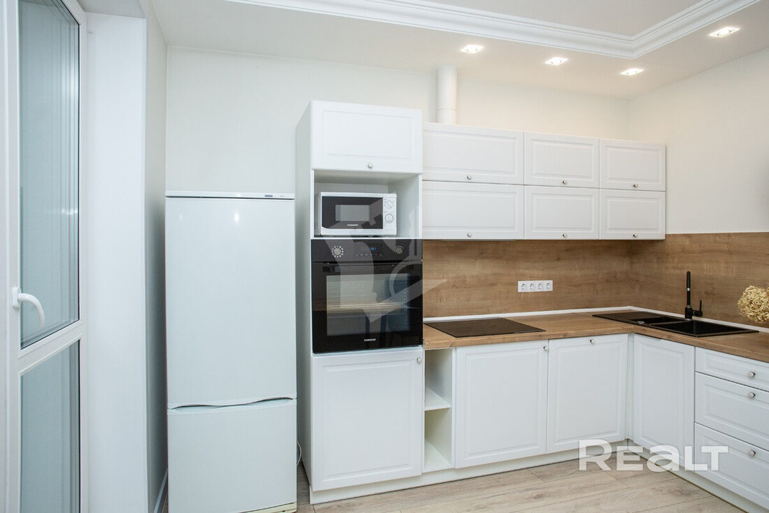 Последняя квартира в подборке находится в доме на Лынькова, 35. Его построили 2016 году в 15 этажей. На 13-м находится двушка. Она занимает 66 квадратов. Из этой площади 10,7 выделено на кухню.