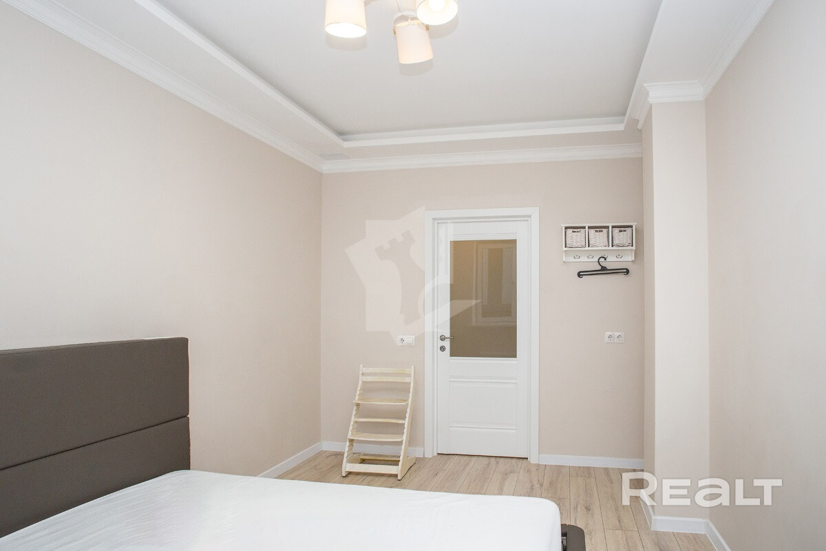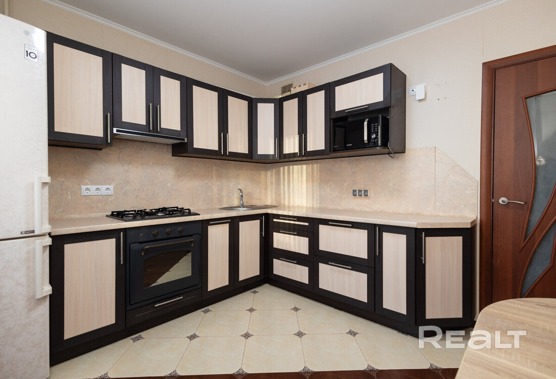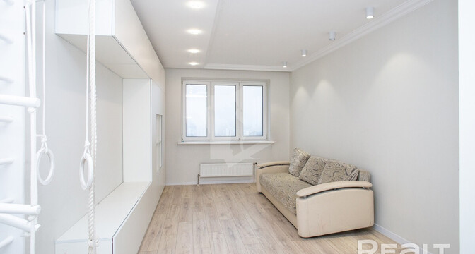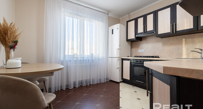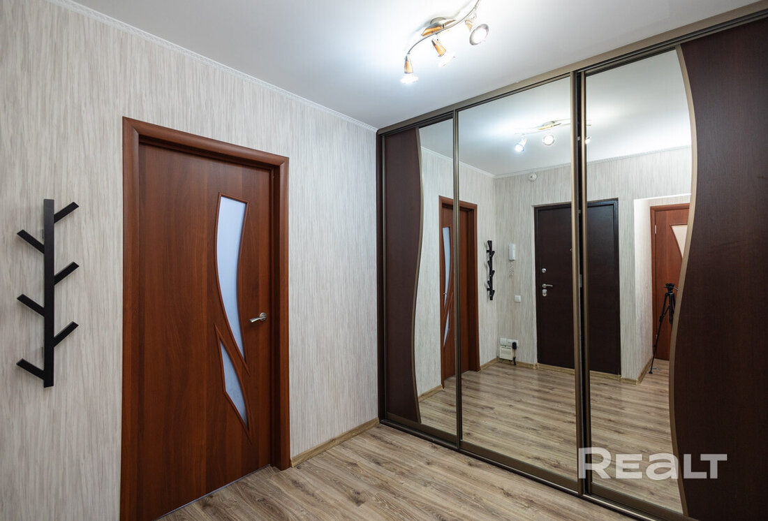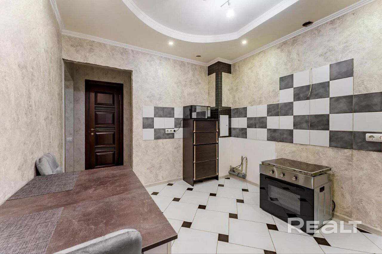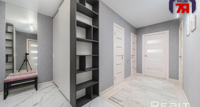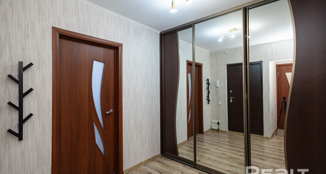 Последняя квартира в подборке находится в доме на Лынькова, 35. Его построили 2016 году в 15 этажей. На 13-м находится двушка. Она занимает 66 квадратов. Из этой площади 10,7 выделено на кухню.