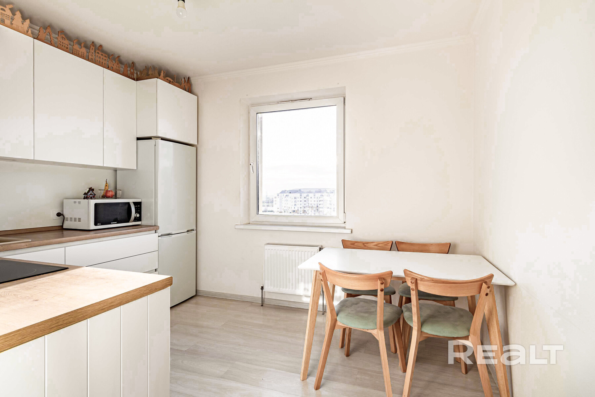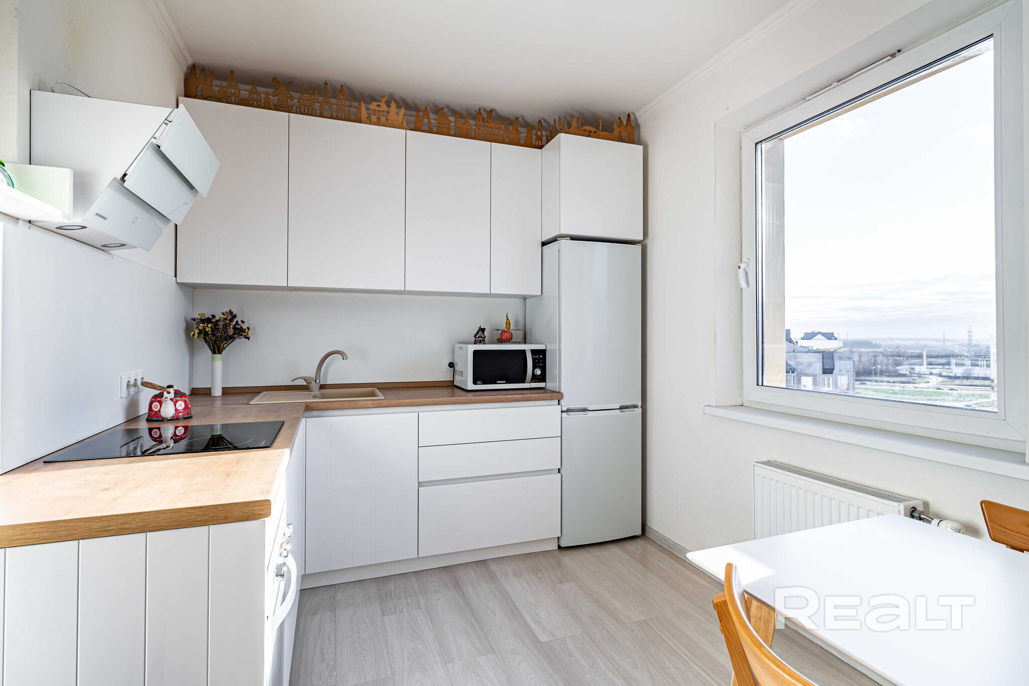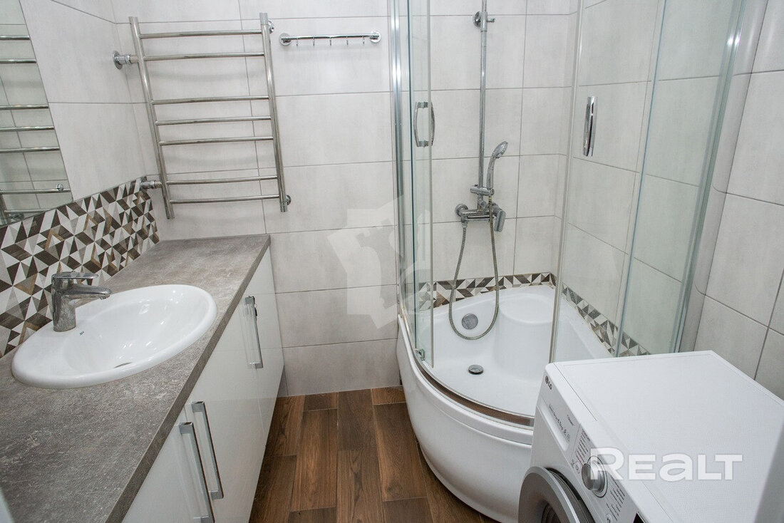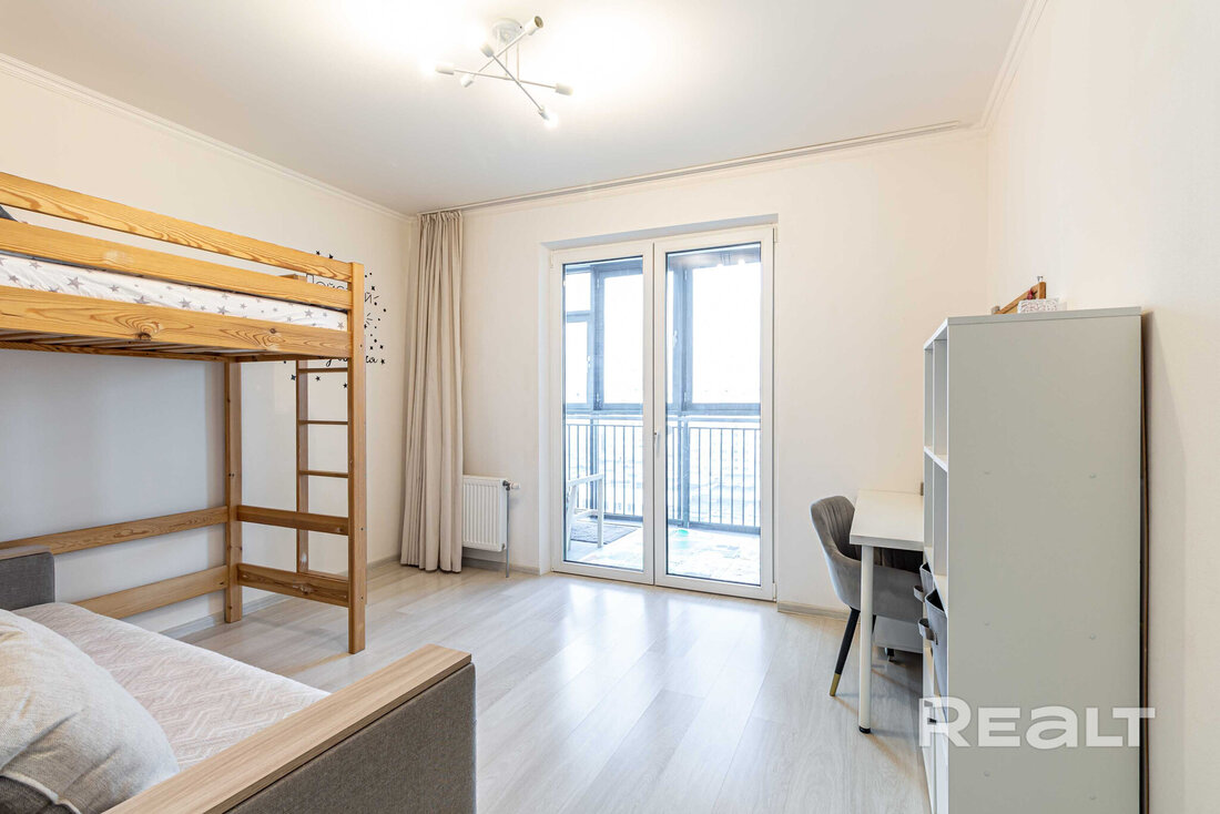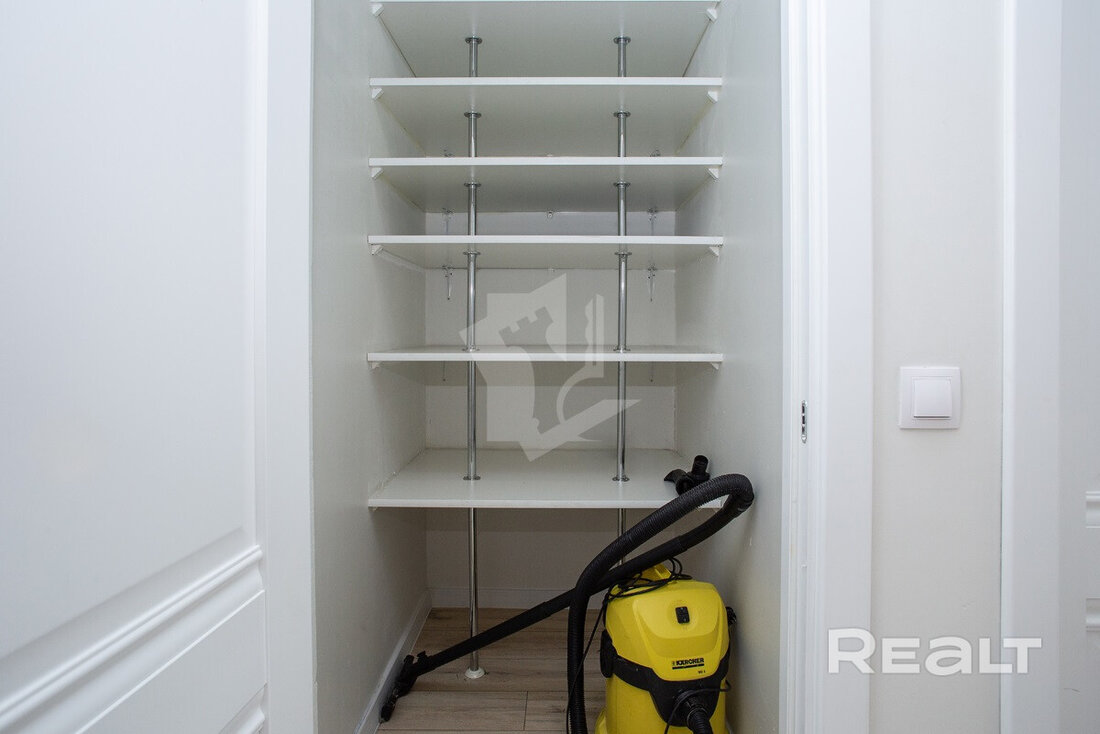 Последняя квартира в подборке находится в доме на Лынькова, 35. Его построили 2016 году в 15 этажей. На 13-м находится двушка. Она занимает 66 квадратов. Из этой площади 10,7 выделено на кухню.