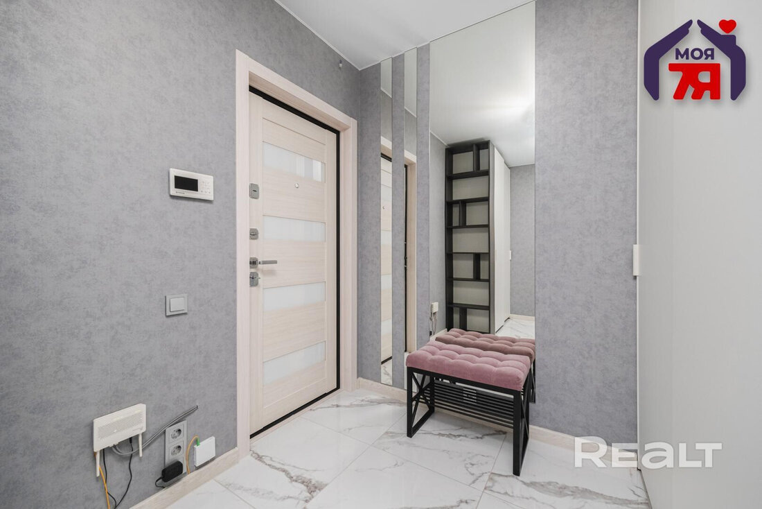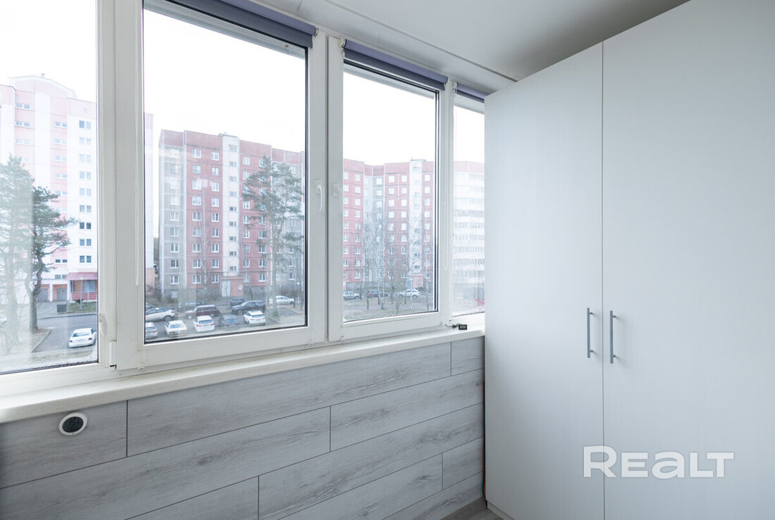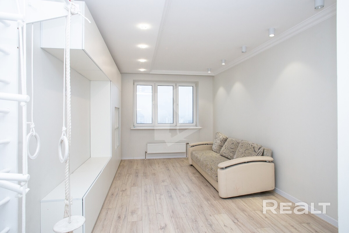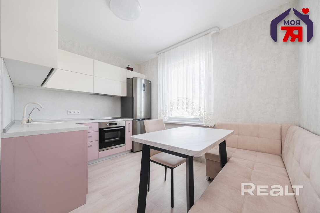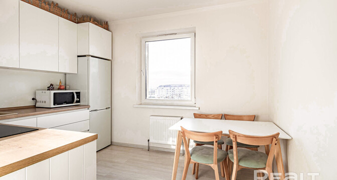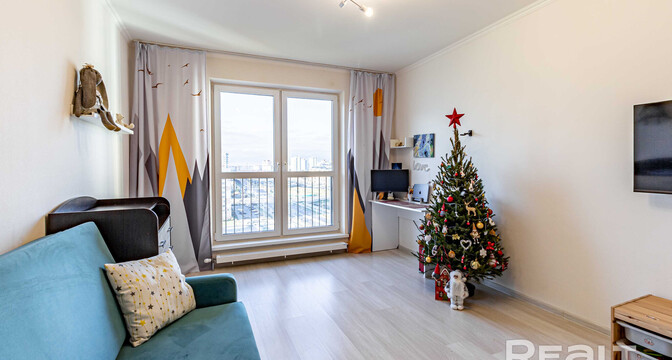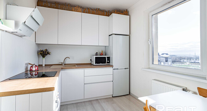 19-этажный дом на Янки Лучины, 72 возвели в 2020 году. Сейчас там на 12 уровне продается квартира в 57,2 м² и с кухней в 9,2 метра.