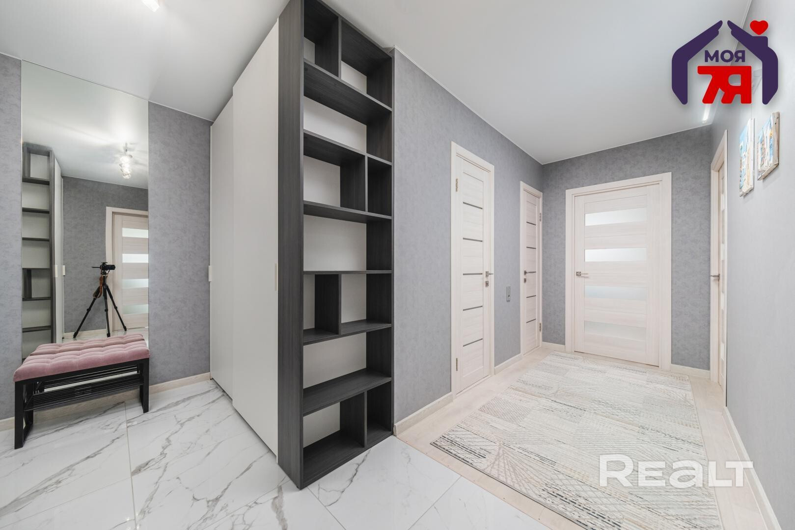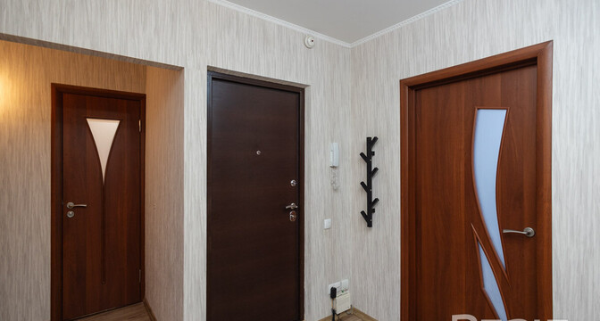 Квартира со стильным и светлым ремонтом: установлены стеклопакеты, напольное покрытие в жилых комнатах и кухне — линолеум, в коридоре и санузле — широкоформатный керамогранит. Стены оклеены обоями.