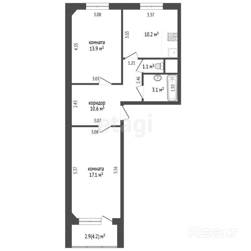 Ванна и туалет — раздельные.