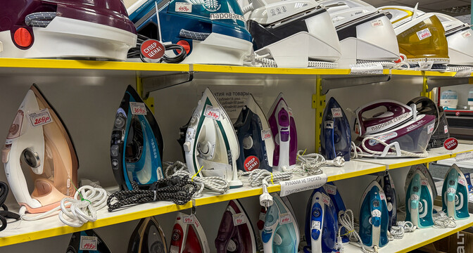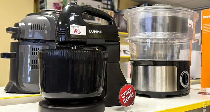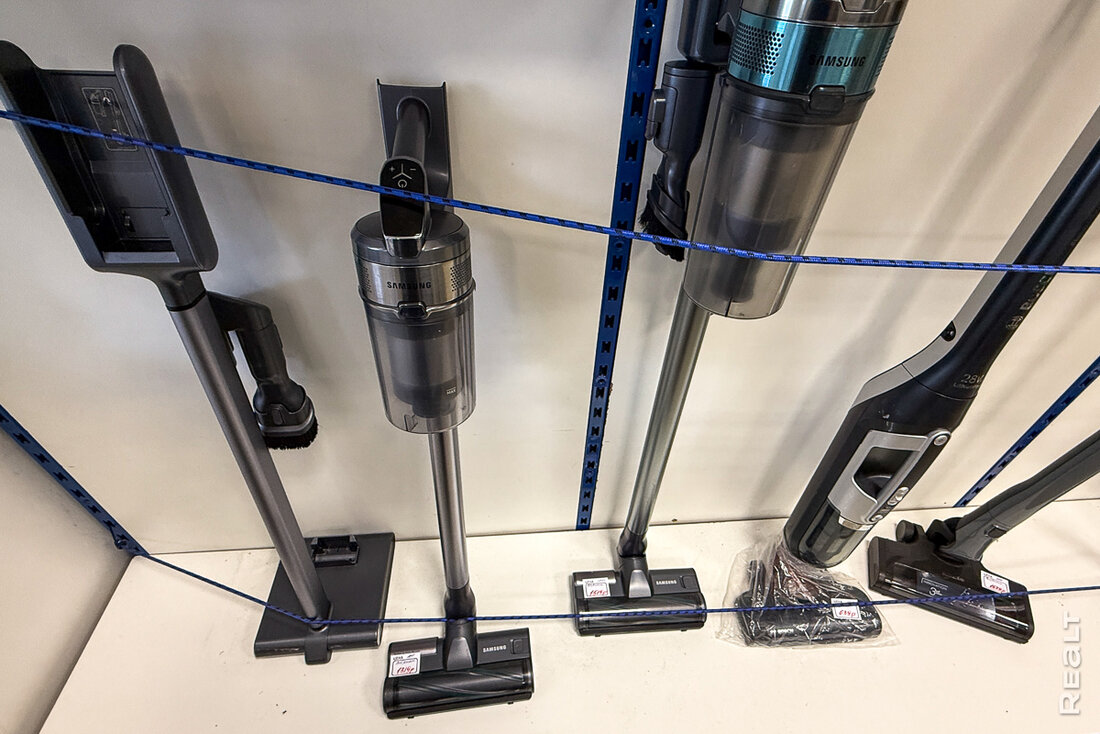 Мелкая бытовая техника в магазине тоже продается. Здесь есть пылесосы — вертикальные и роботы, утюги и паровые станции, кофе-машины и компактные электроплитки, блендеры, миксеры и кухонные комбайны. А еще есть кондиционеры и вытяжки.
