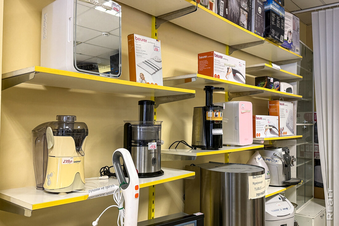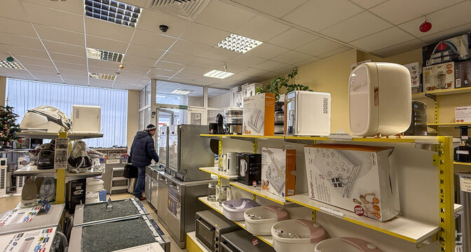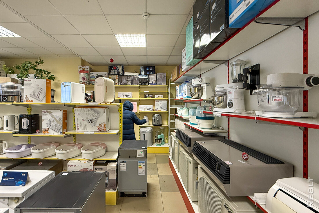 Помещение магазина довольно компактное, но здесь выставлено немало товаров. В том числе и крупной бытовой техники.