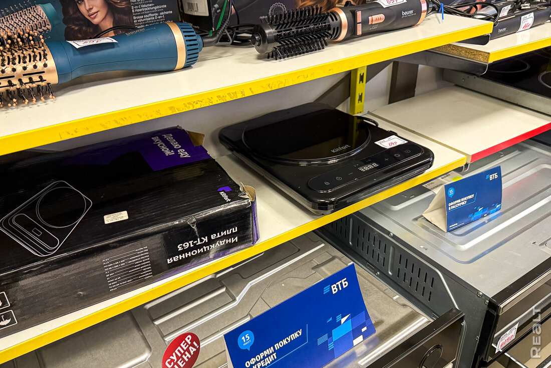 В магазине появилось много товаров французского бренда Thomson. К примеру, духовой шкаф этого бренда с витрины можно купить за 989 рублей вместо 2 тысяч рублей, а встраиваемые посудомоечные машины стоят от 620 рублей. Духовой шкаф словенского бренда Gorenje стоит 1 619 рублей. В интернет-магазинах эта модель сейчас продается на тысячу рублей дороже. Скидка — из-за того, что образец витринный.