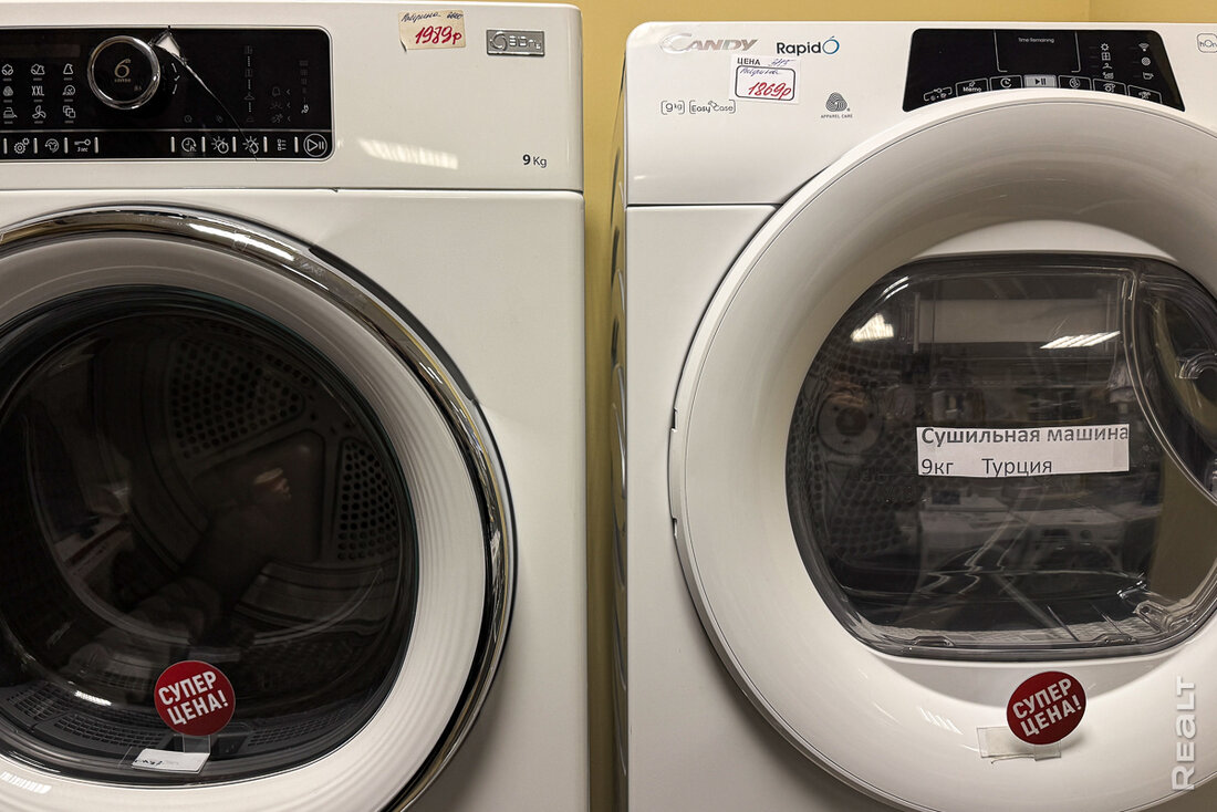 Из брендов бытовой техники в магазине представлены Bosch, Gorenje, LG, Samsung, Siemens, Haier и другие. Некоторые товары разбирают быстро, а есть и те, что остаются в продаже надолго. Так, например, мы увидели ту же сушильную машину Candy, что продавалась в прошлом году. Тогда ее стоимость была 1 995 рублей, а сейчас — 1 869 рублей.