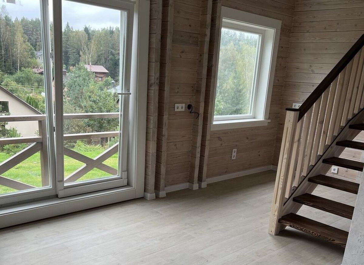 Дом построен по технологии двойного утепленного бруса. На крыше — финская металлочерепица. Установлены современные деревянные стеклопакеты, входные двери металлические. Строение сдано в эксплуатацию.