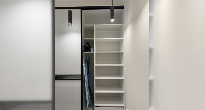 Площадь кухни — 9 квадратов. Из техники есть посудомоечная машина, духовой шкаф, газовая плита, встроенная СВЧ-печь.