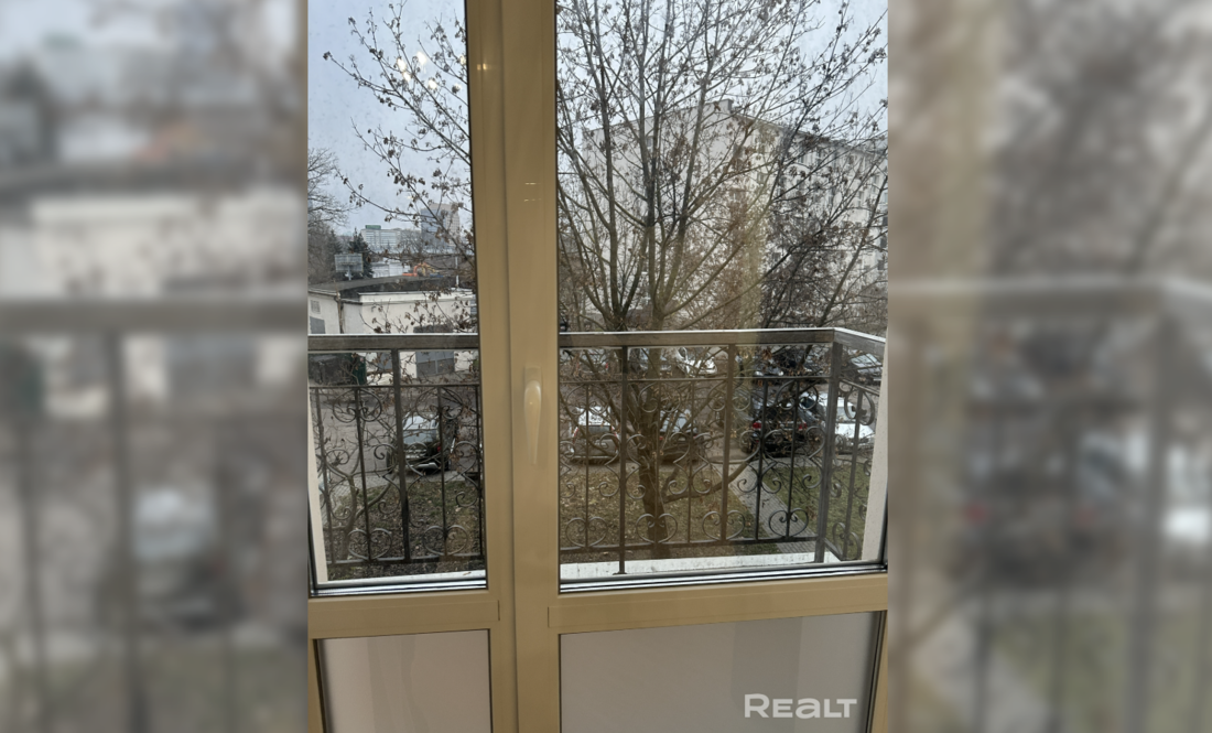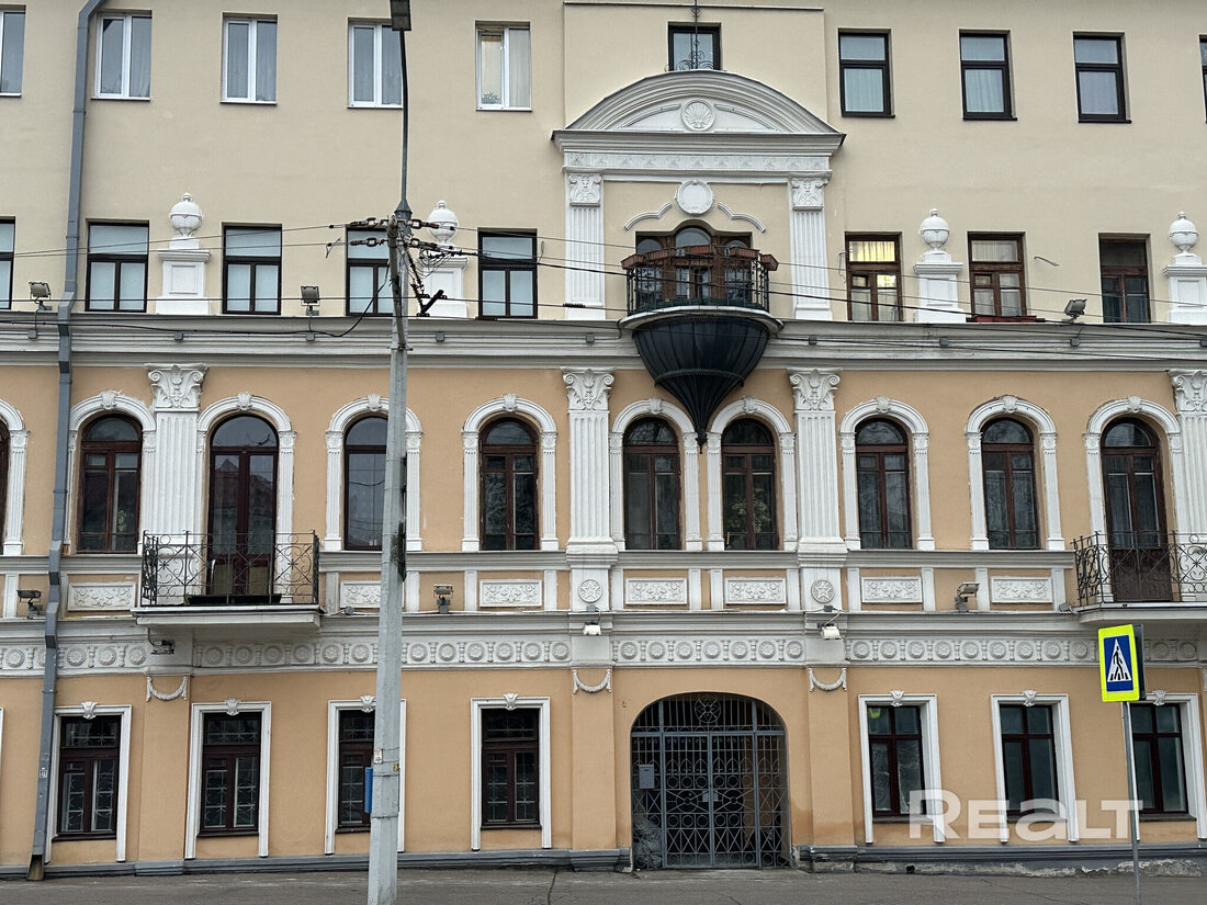 Про этот дом на Мясникова, 76 мы рассказывали не раз: сто лет назад здесь жил писатель Янка Мавр, а луковичный балкон и сейчас привлекает внимание минчан. Сейчас в этом доме на втором этаже появилась в продаже однушка с современным ремонтом.