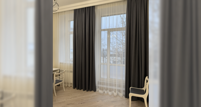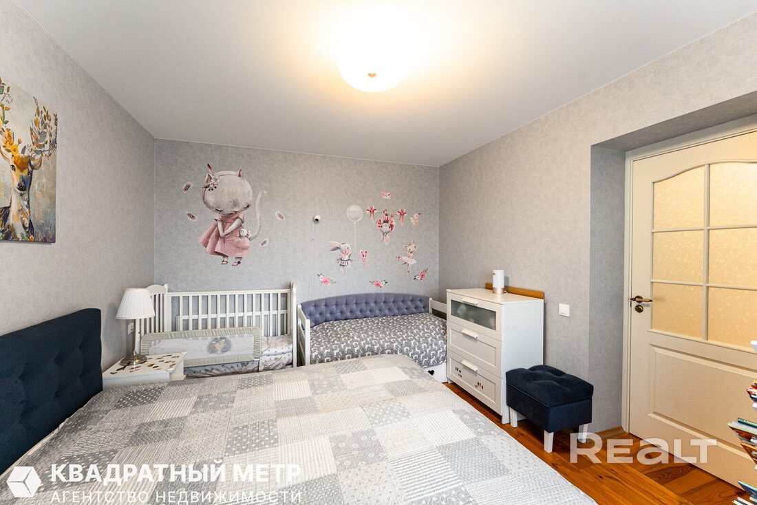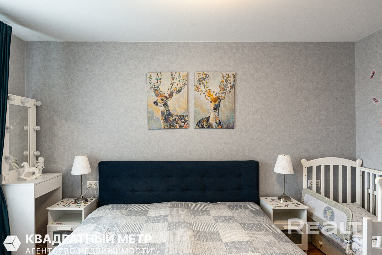 В квартире выполнен ремонт в классическом стиле. На полу — паркетная доска из массива сосны. В гостиной большое эркерное окно с широким подоконником. Во второй жилой комнате оборудована спальня.