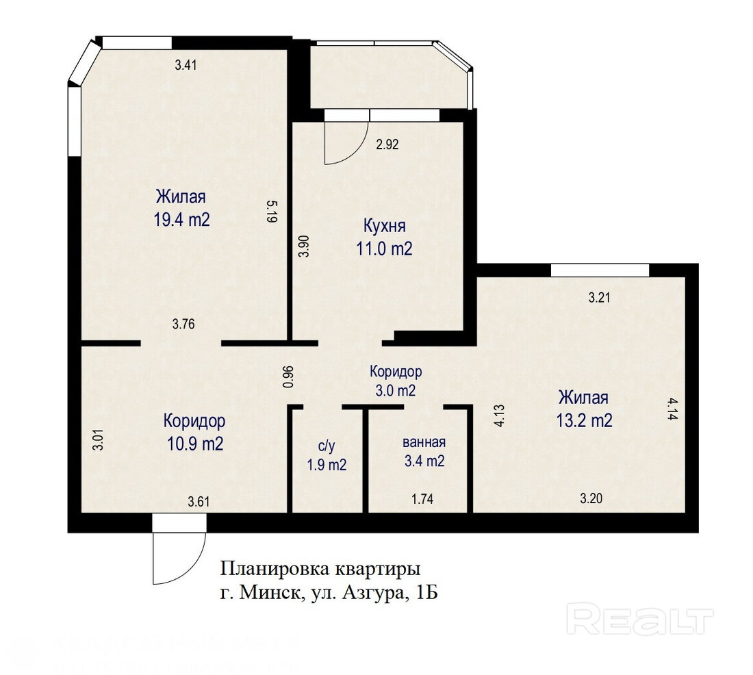 Последний вариант подборки — двухкомнатная квартира на шестом этаже в девятиэтажном доме на Азгура, 1б. До станции метро «Площадь Победы» 10 минут пешком.