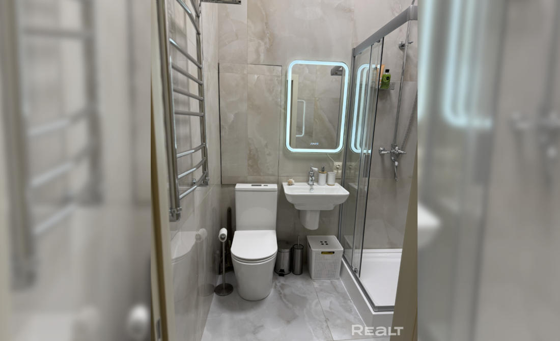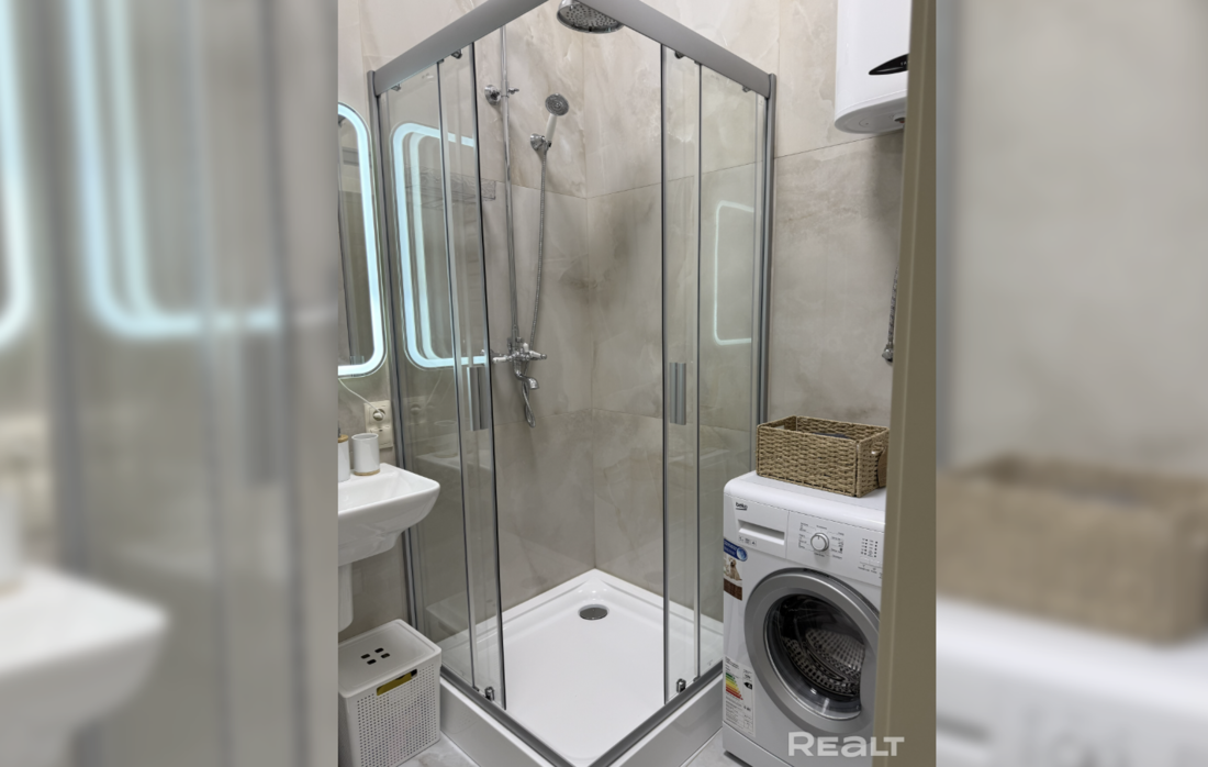 В совмещенном санузле установлена душевая кабина и подключена стиральная машина. Есть бойлер.
