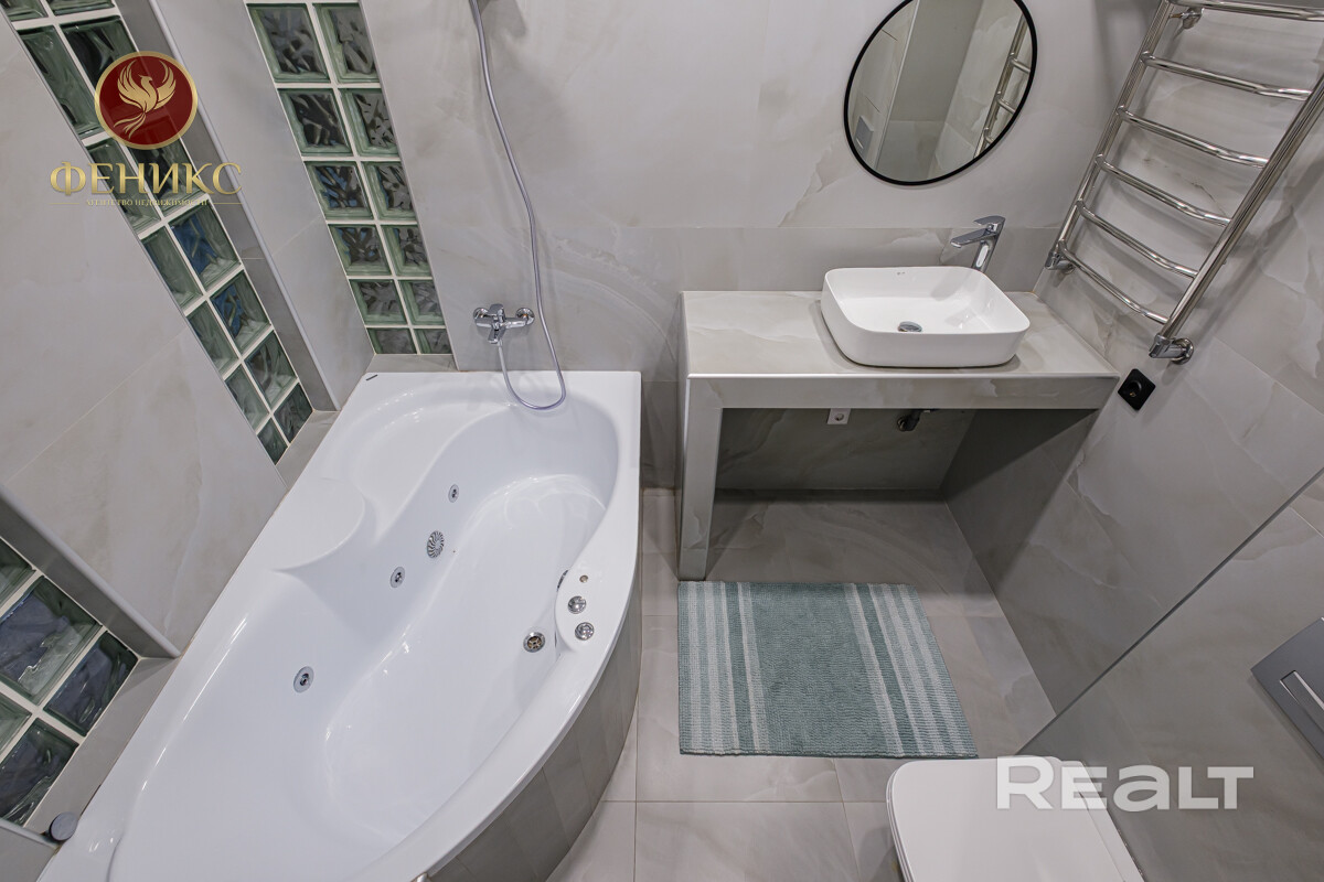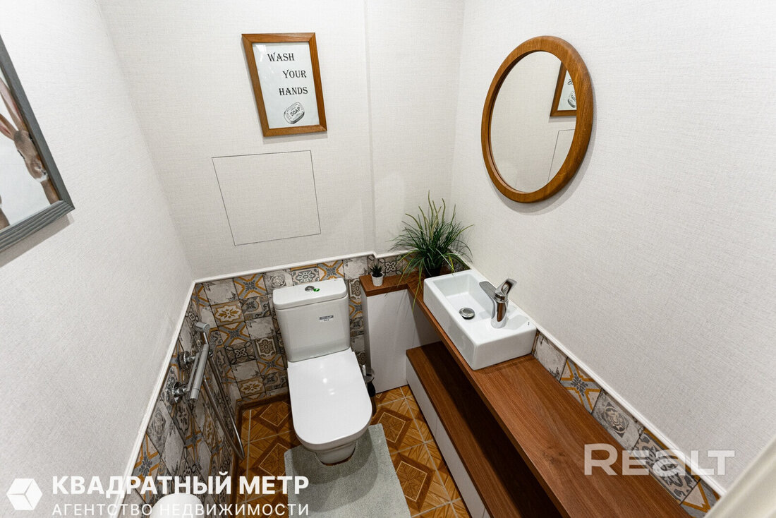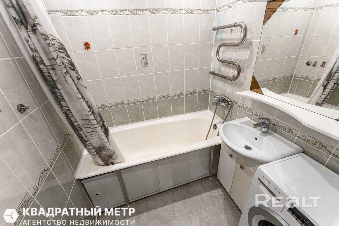 Санузел раздельный. В туалете установлен умывальник, псевдобиде и унитаз Roca Gap. В ванной комнате — ванна и стиральная машина.