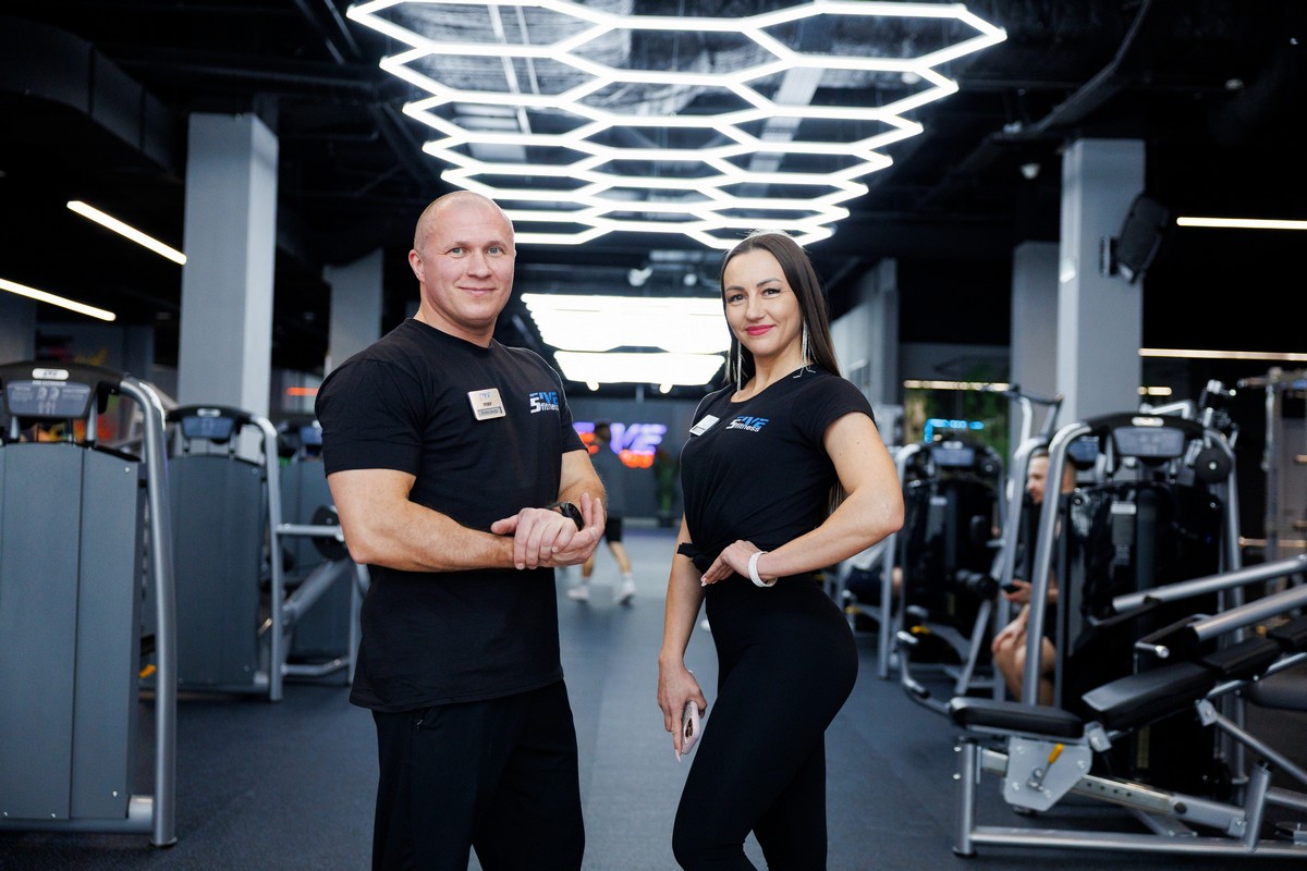 5Five Fitness занимает более 2400 «квадратов». В просторный фитнес-центр ведут лестницы и свой эскалатор. Интерьер выполнен в современном стиле — с арт-стенами, стильной навигацией над головой, неоновой подсветкой и селфи-зеркалами во весь рост. Интересная деталь: в центре клуба стоят умывальники с бесплатной питьевой водой.